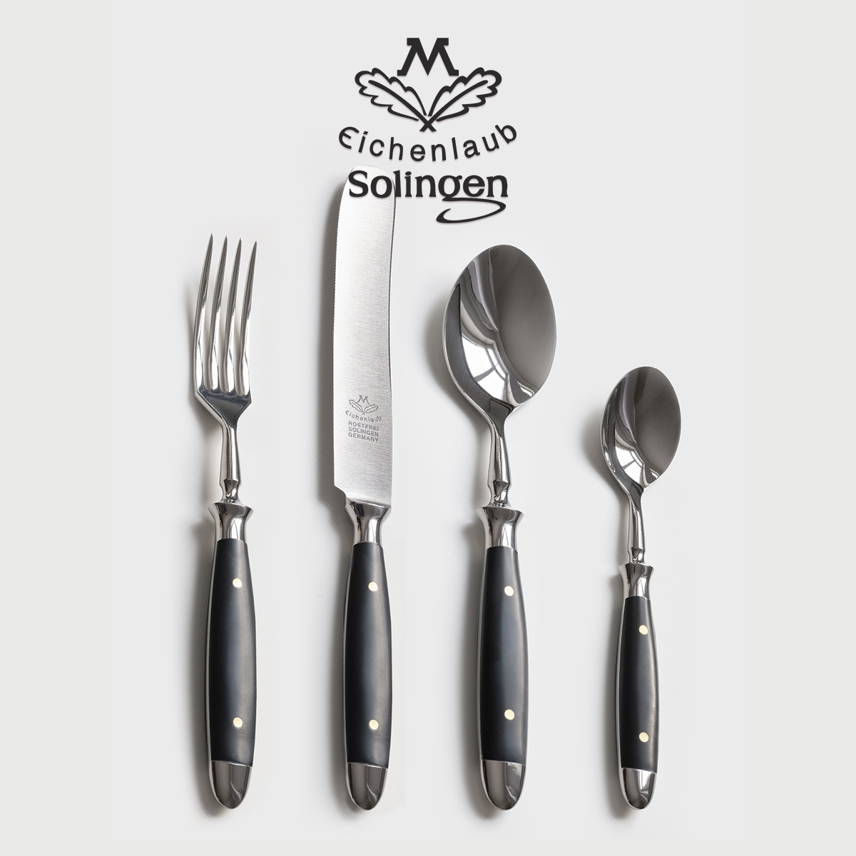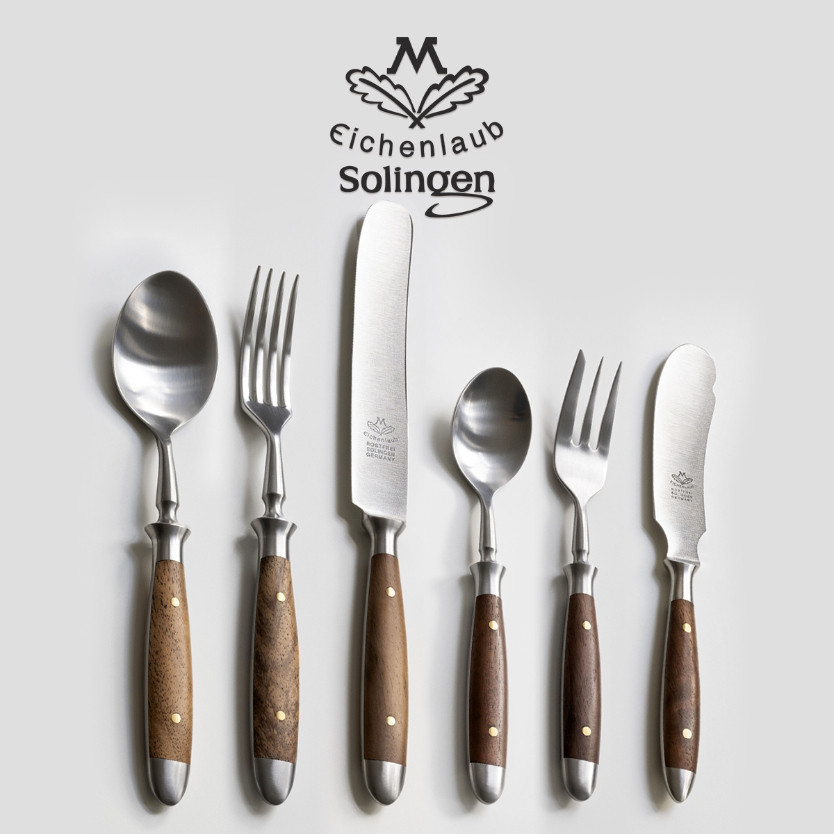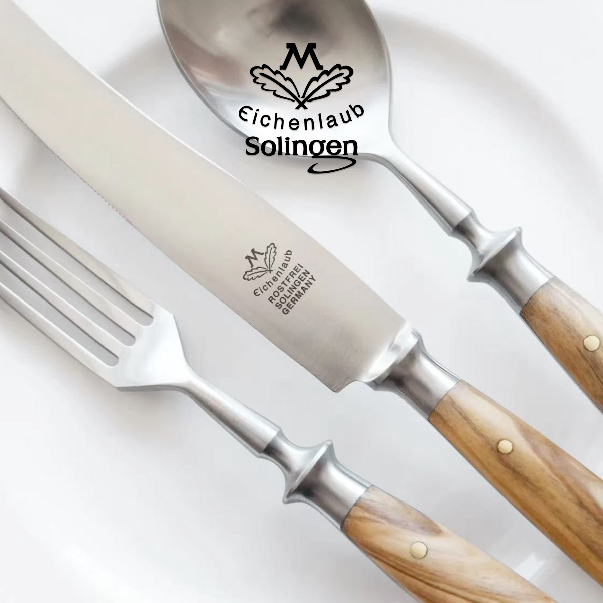 📚 德国橡树叶Eichenlaub高端手工锻造餐具高硬度哑光不锈钢胡桃木把