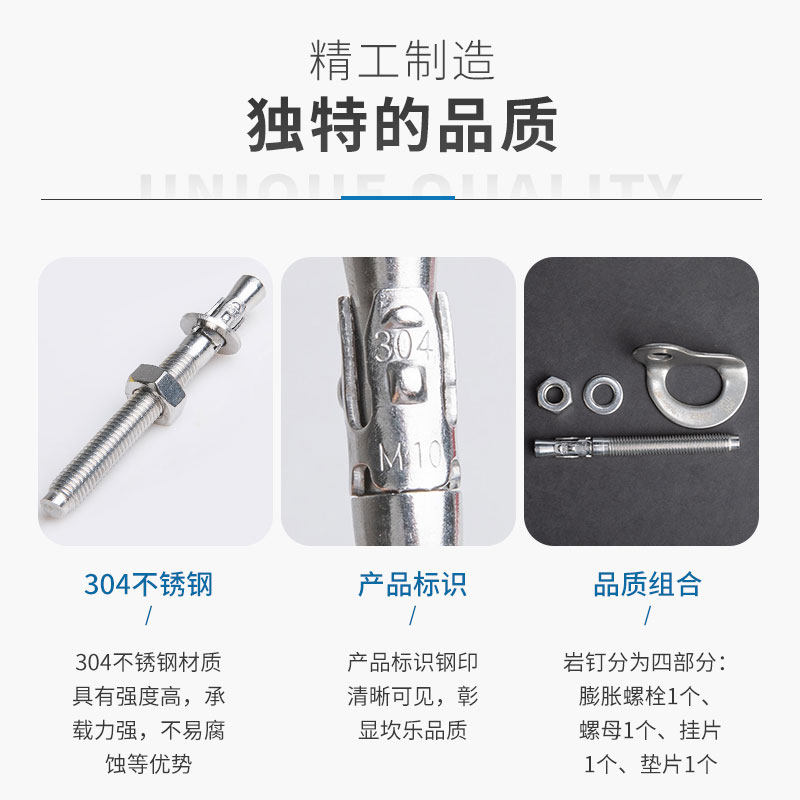 📚 坎乐304不锈钢岩钉挂片膨胀钉攀岩定锚点高空安全绳固定器螺丝栓