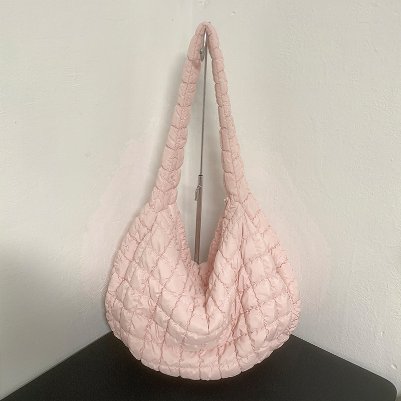 📚 斜挎褶皱云朵包大号韩国cos可颂2024新款泡泡羽绒绗缝泡芙大容量