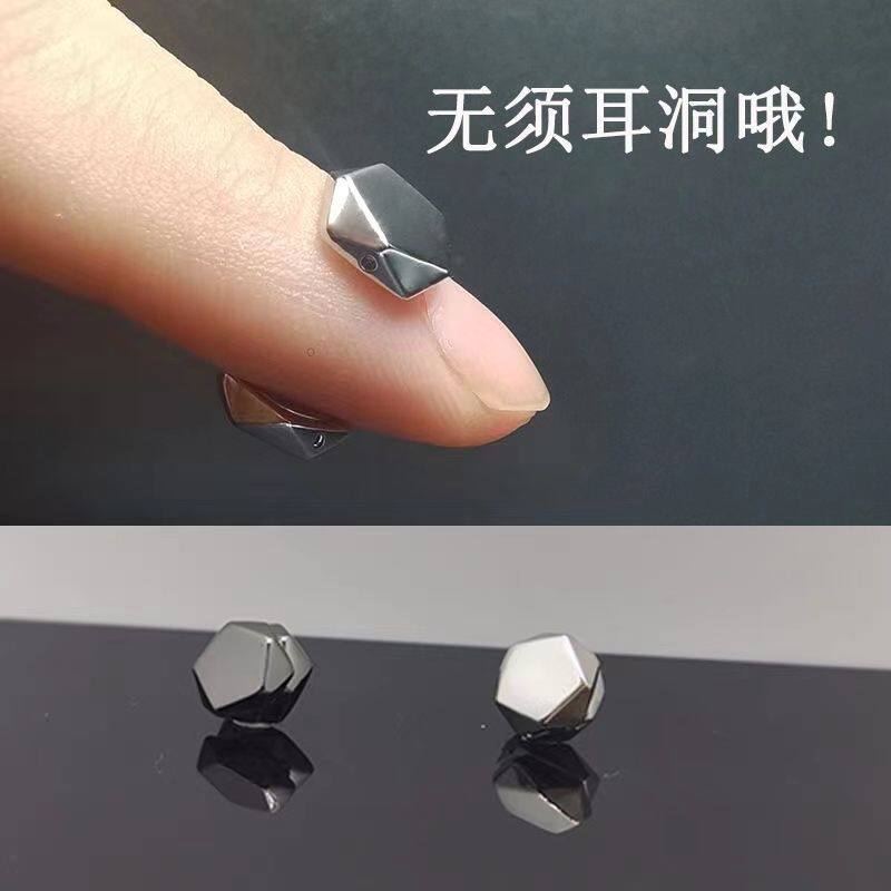 📚 耳夹无耳洞吸铁石男几何形磁铁耳钉男士耳环无孔无洞酷暗黑系