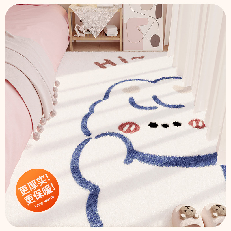 📚 床边地毯卧室四季加厚仿羊绒少女儿童房女孩可爱客厅主卧床下地垫