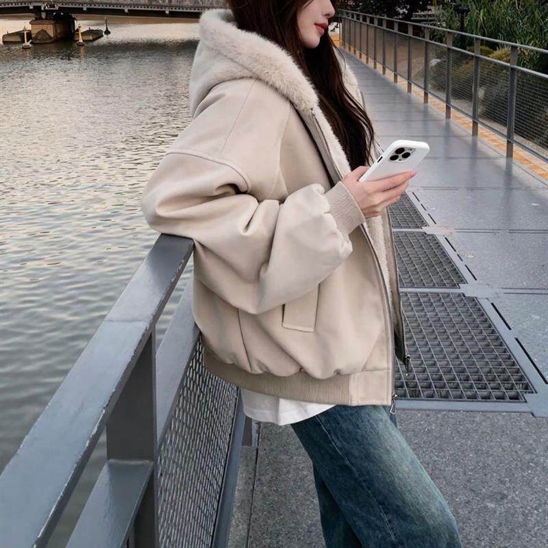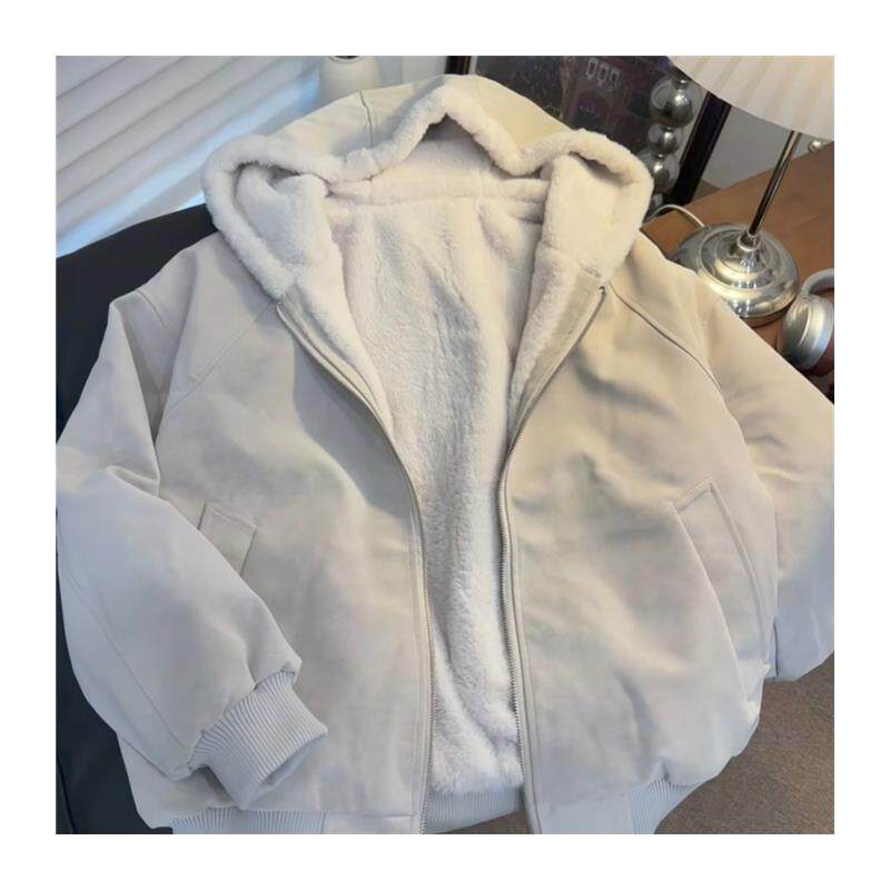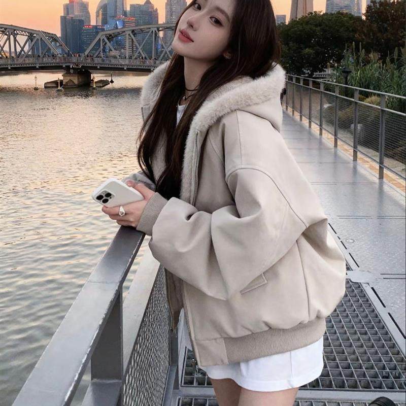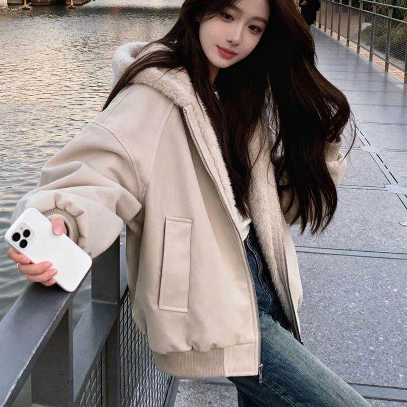 📚 羊羔毛绒厚外套棉服女款2025新款冬季连帽小个子短款保暖情侣棉袄