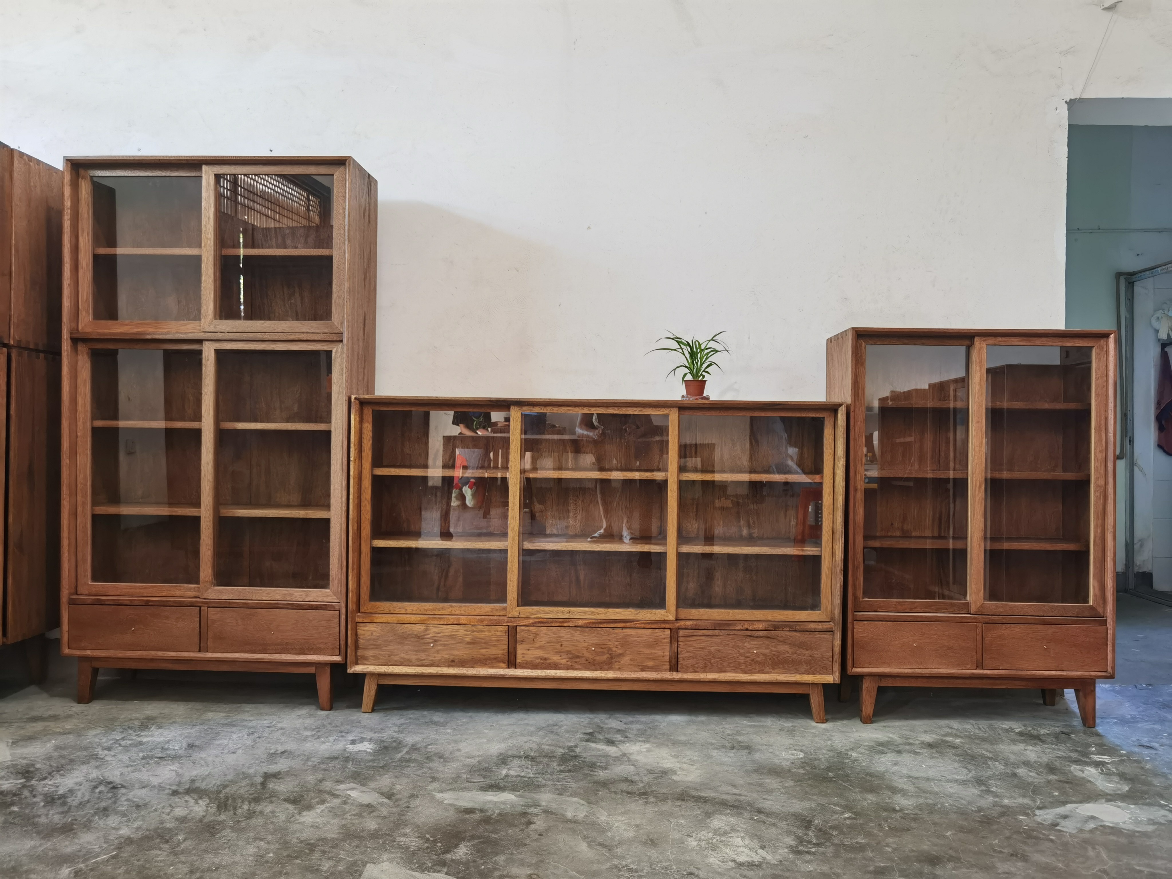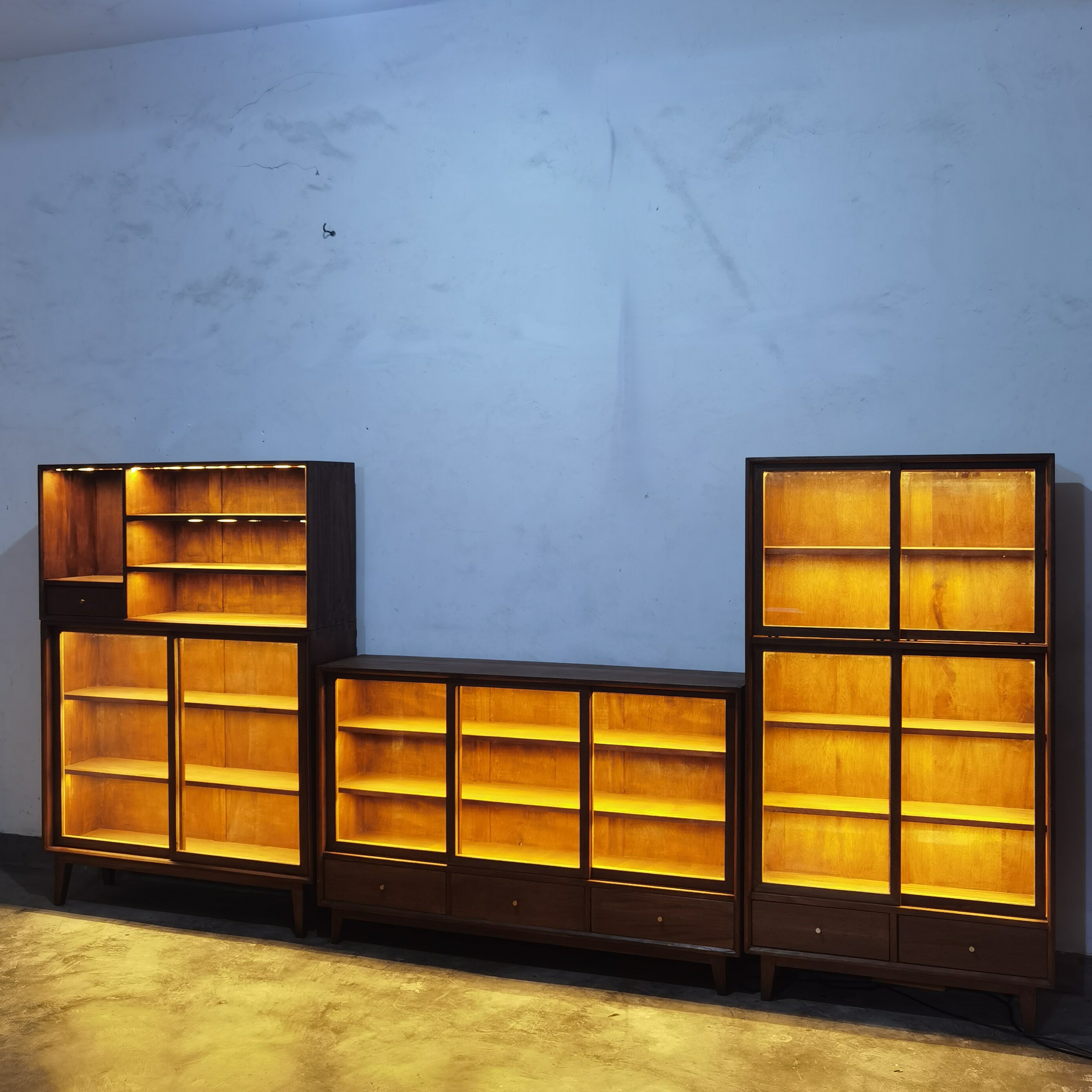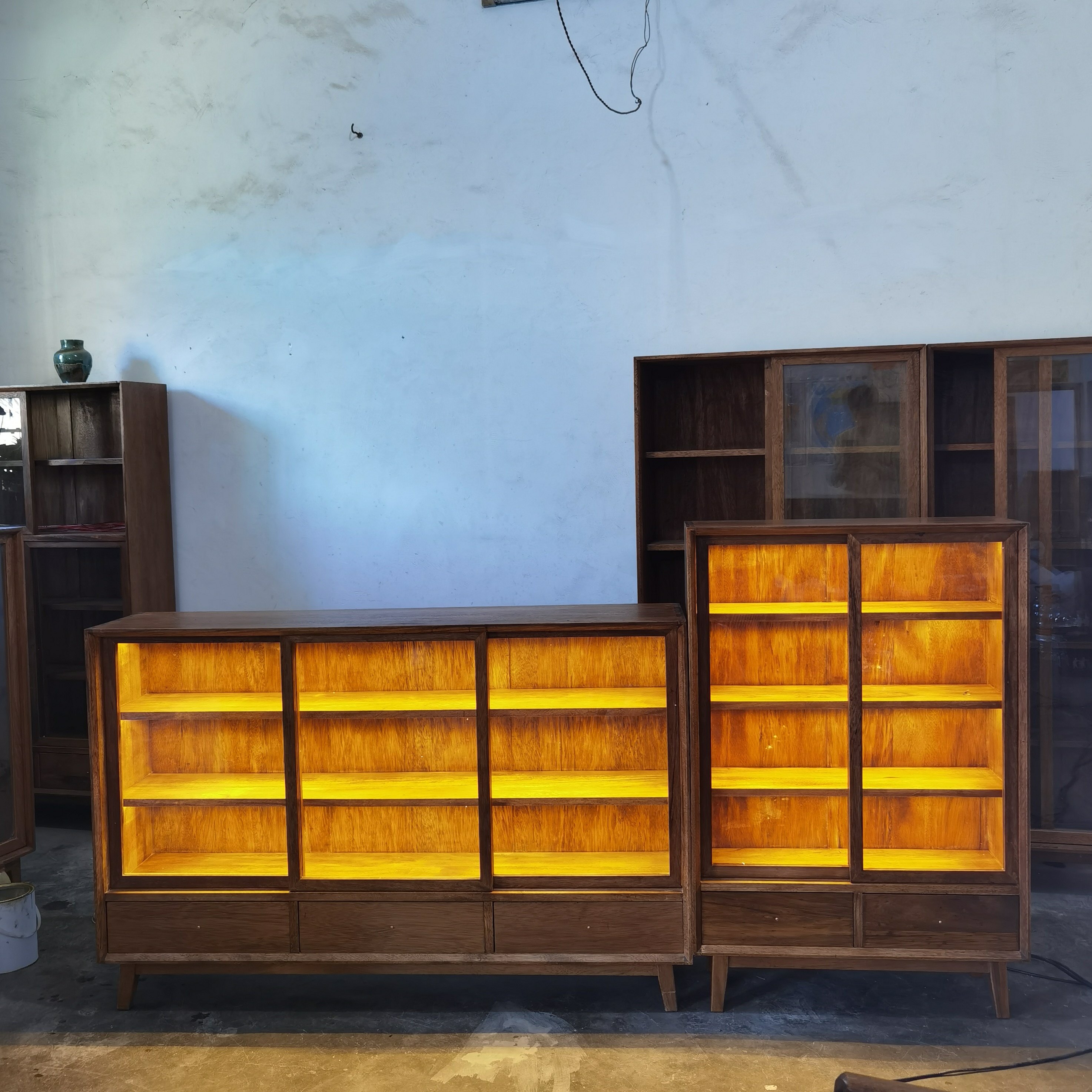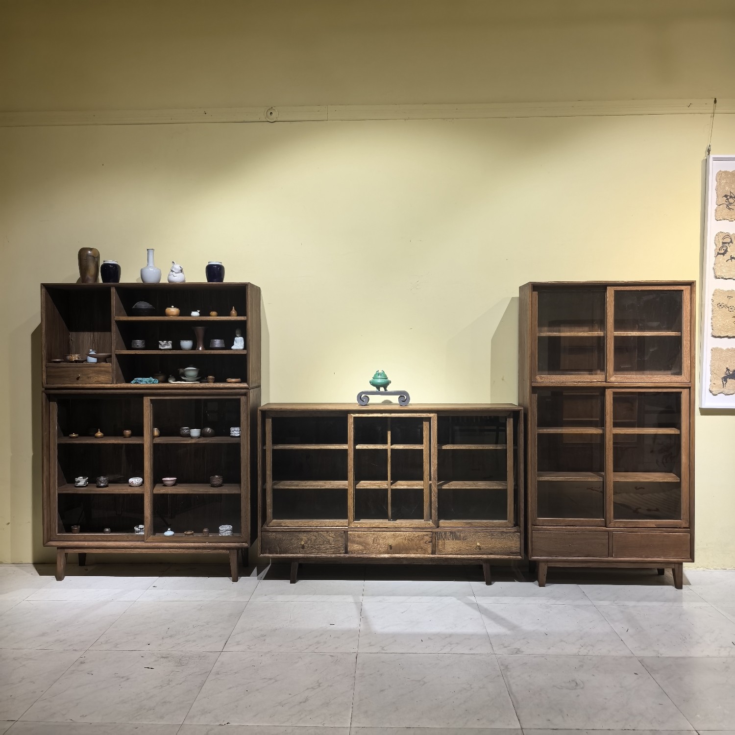 📚 胡桃木色实木玻璃柜储物收纳柜餐边柜侘寂风老料酒柜书柜茶空间