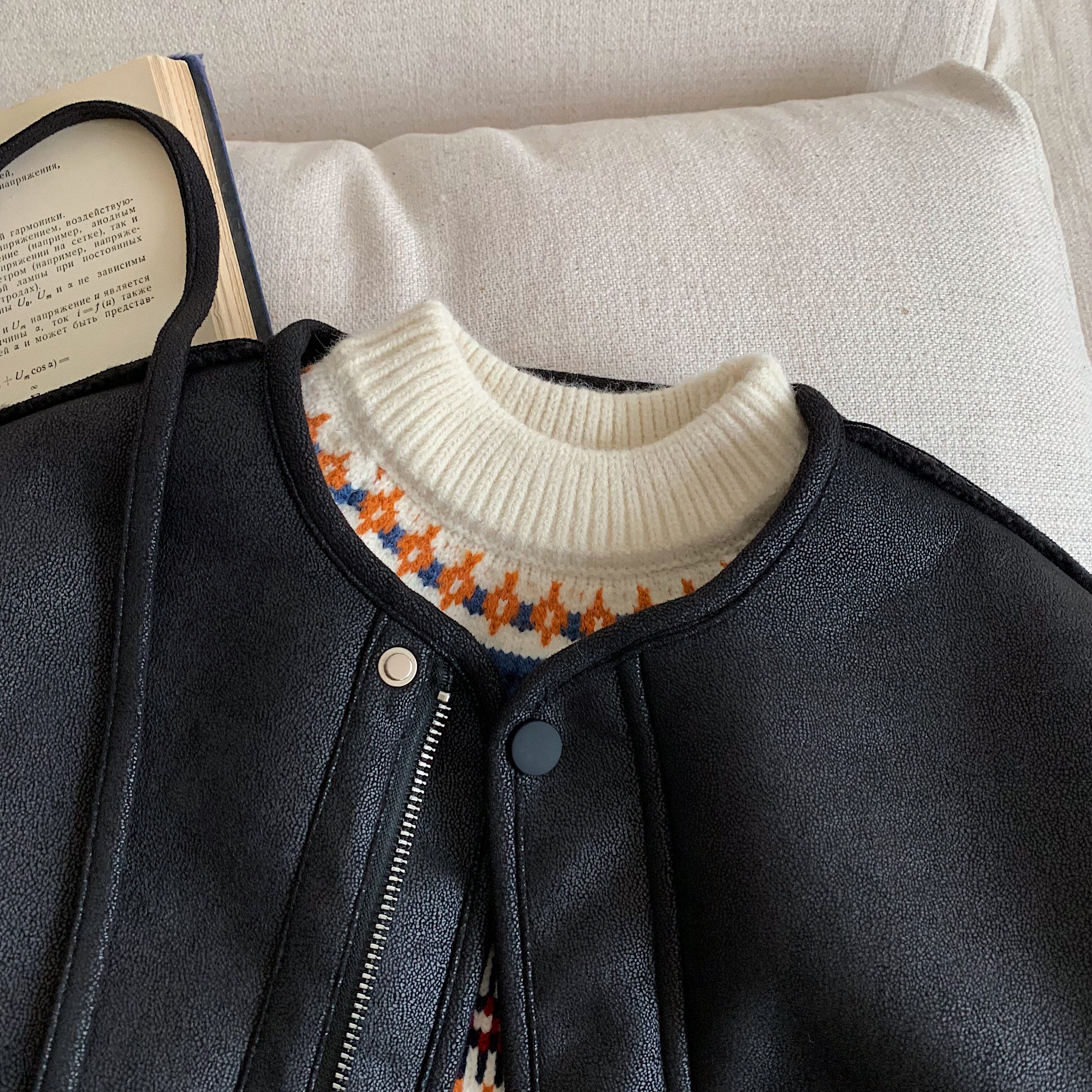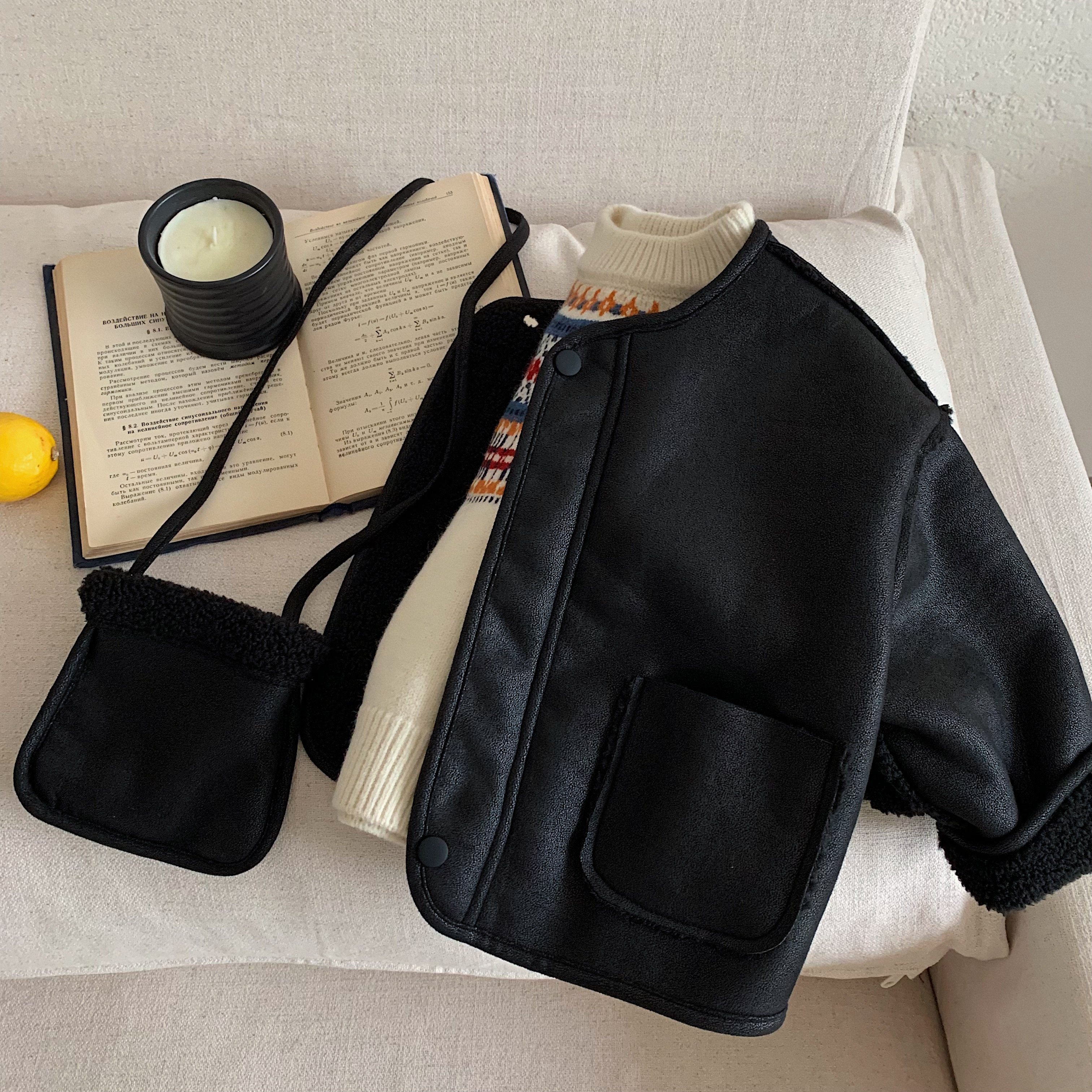 📚 儿童加绒外套男女童羊羔绒皮衣2025冬季新款宝宝纯色夹克加厚保暖