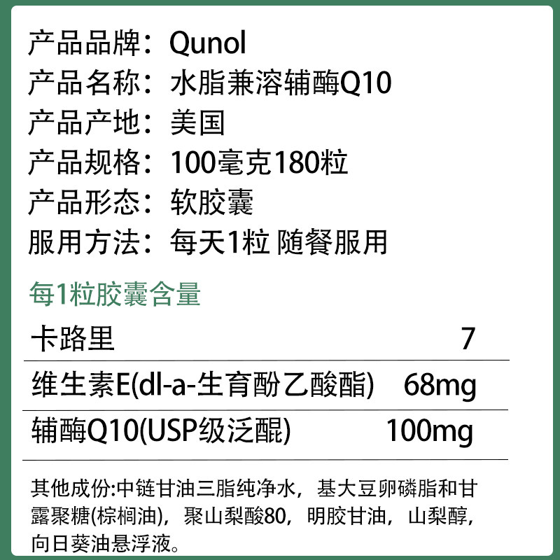 📚 酋诺Qunol加强版辅酶Q10心肌护心180粒3倍吸收氧化型美国直邮