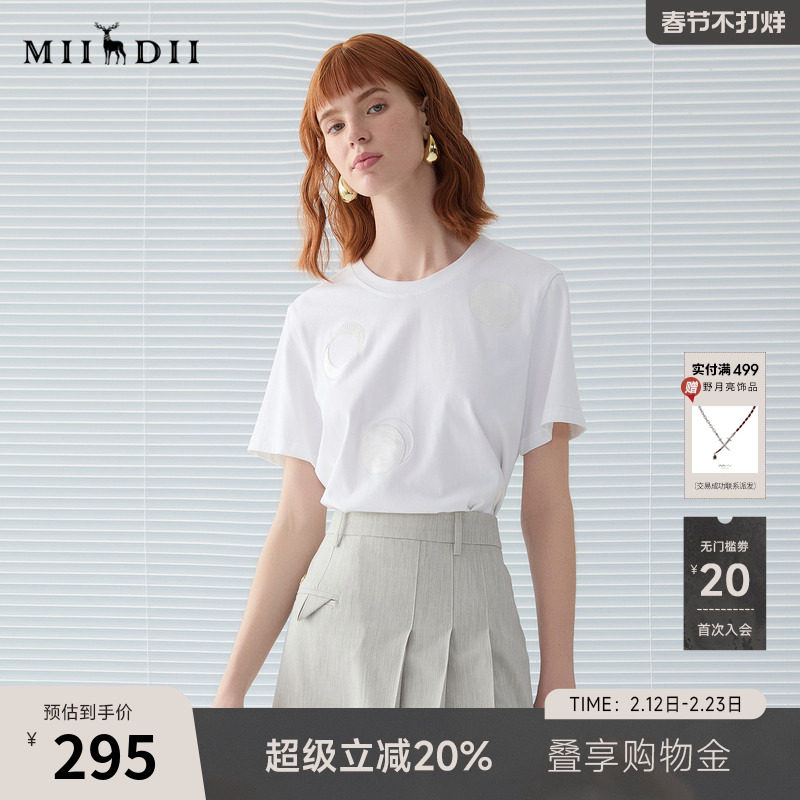 37¥ MF278 VhJnULSgnEv¥ https://m.tb.cn/h.7ysxNTD 谜底白T恤短袖女2025春季新品圆领百搭基础宽松刺绣上衣251MT0058 --------------------- 【原售价】529元 【现售价】370元。