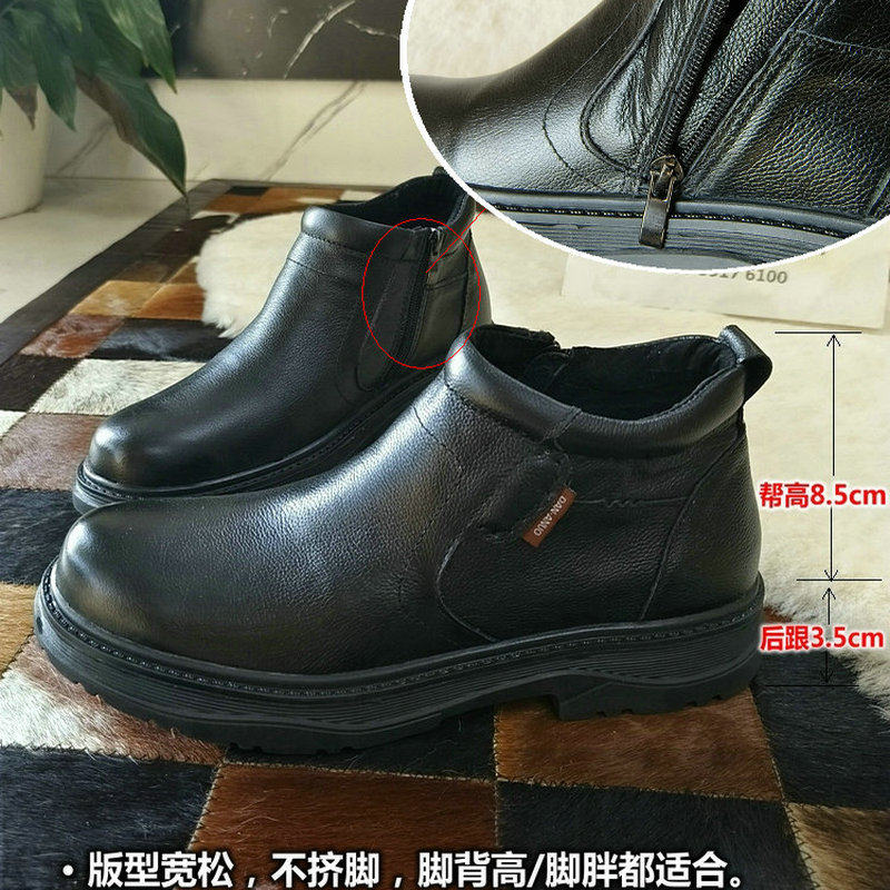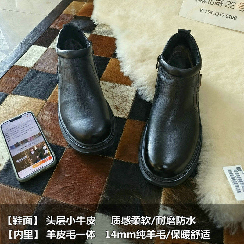 📚 冬季皮棉鞋男士羊毛加绒皮毛一体中高帮一脚蹬保暖中老年真皮男鞋