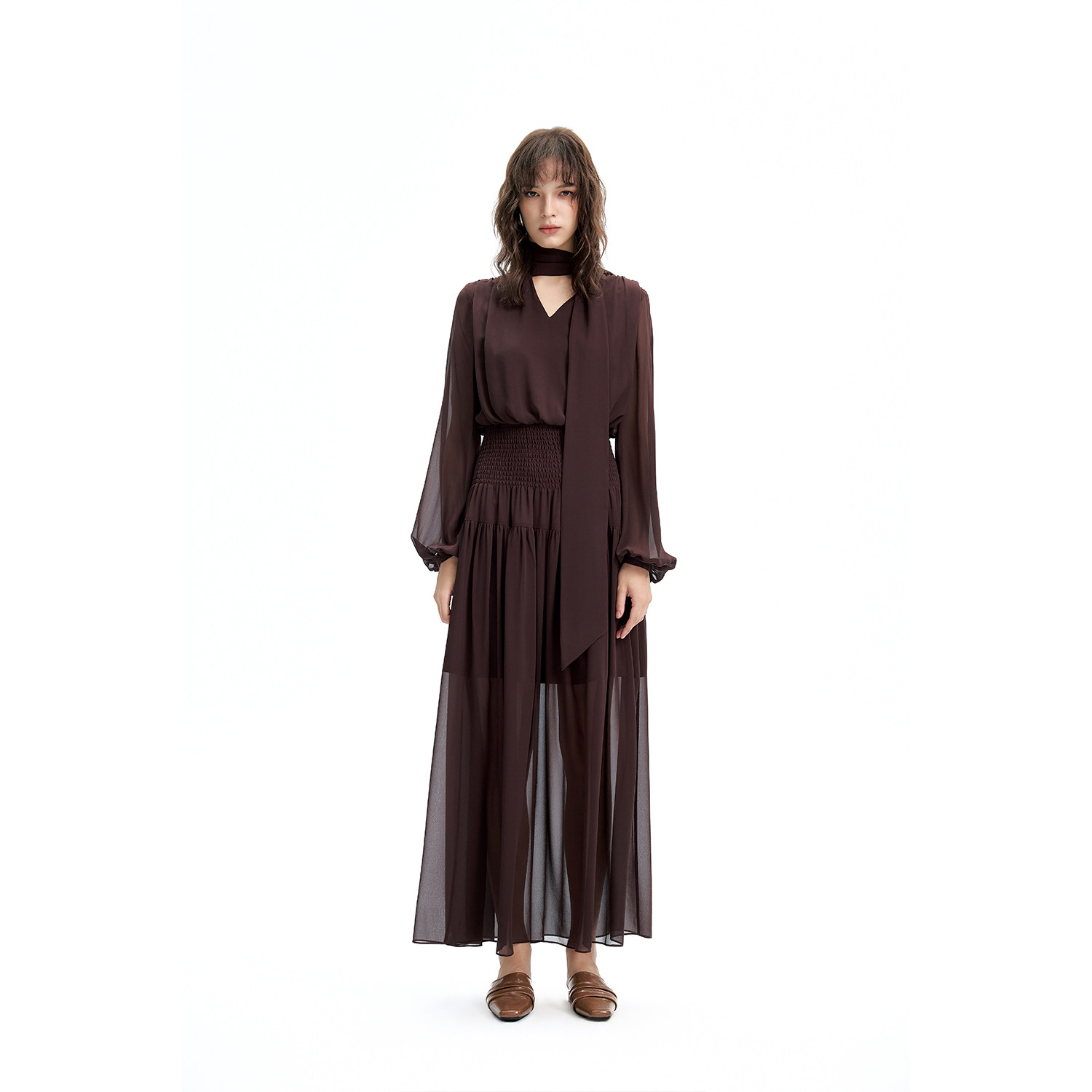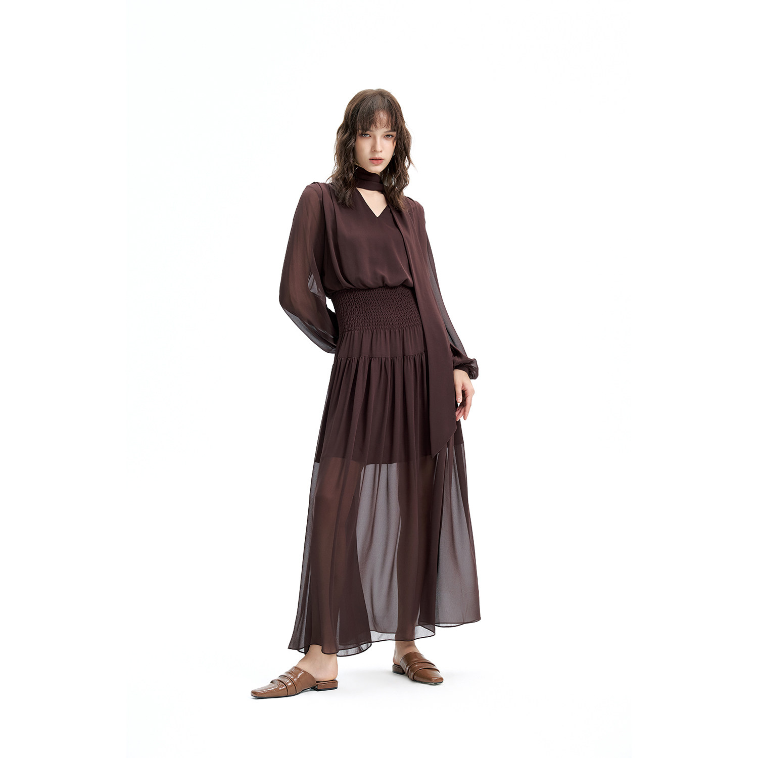 📚 DI.AD 法式飘带V领打揽收腰显瘦气质连衣裙女高级感长裙
