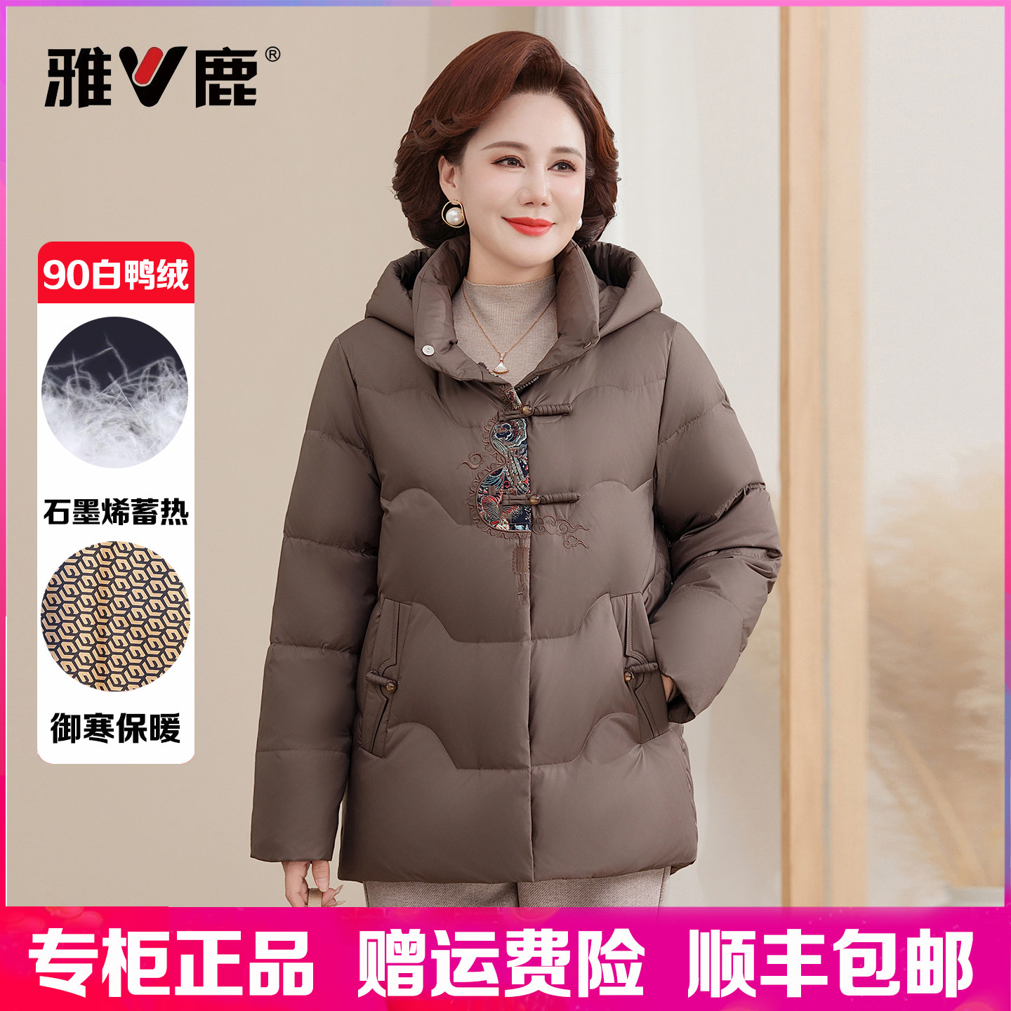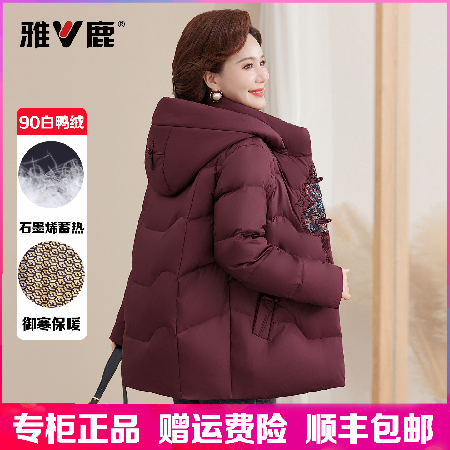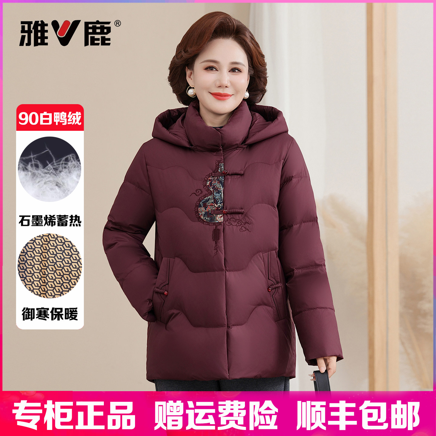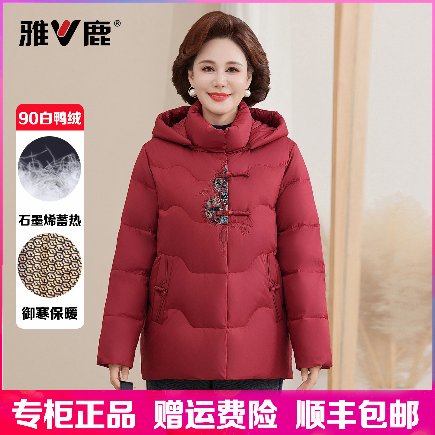 📚 雅鹿羽绒服女短款妈妈装2025冬季新款中老年加厚大码白鸭绒外套女