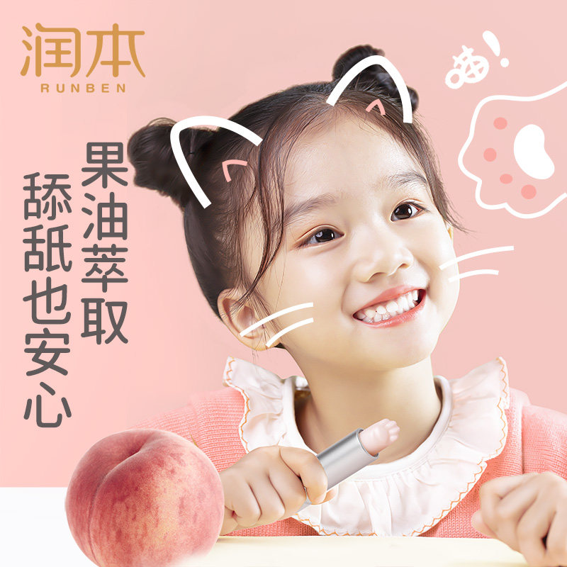 📚 润本润唇膏可爱猫爪保湿滋润婴幼儿秋冬季补水防裂小桃喜宝宝唇膏