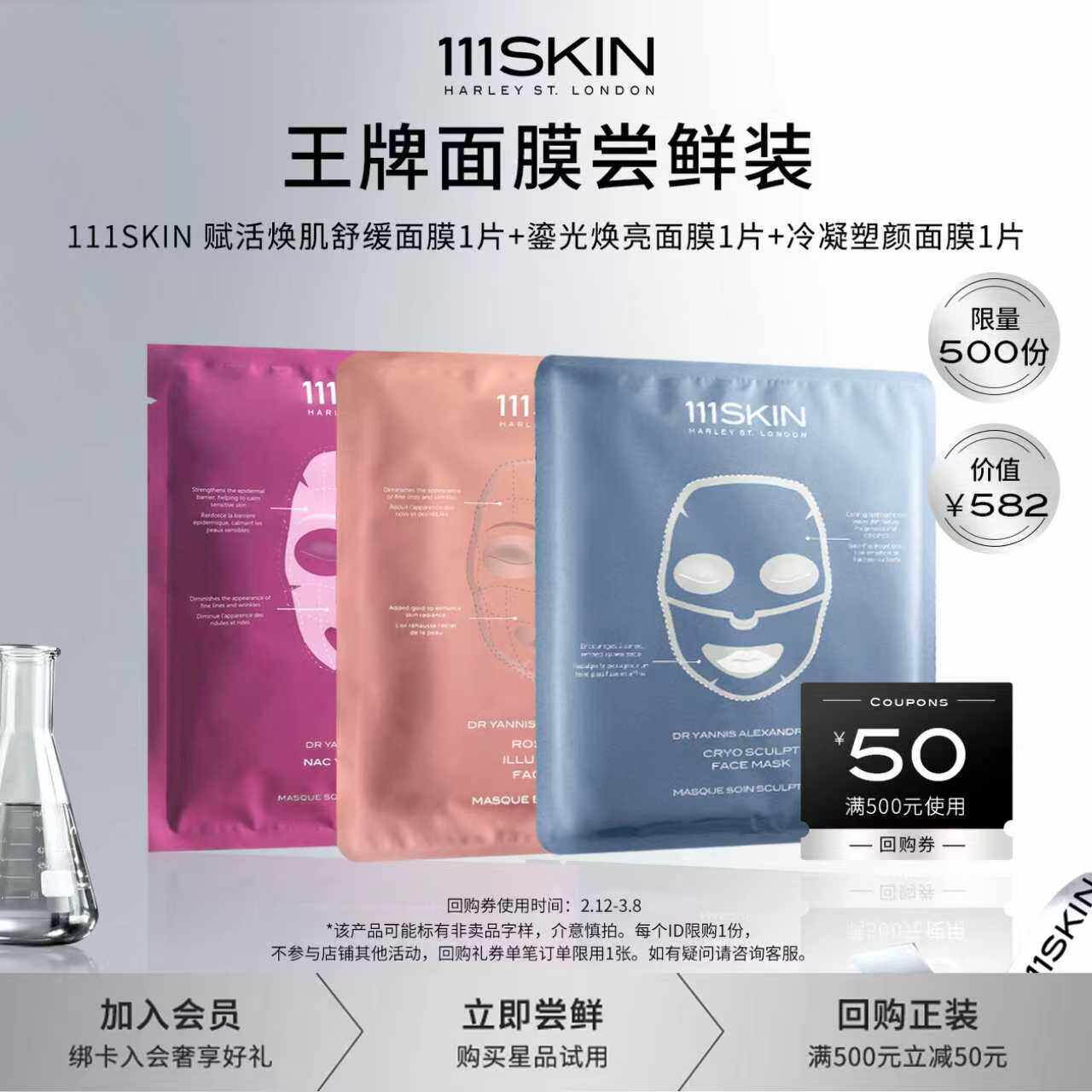 📚 【会员专享】111SKIN玫瑰金面膜紫鎏金面膜冷凝面膜3片装+回购券