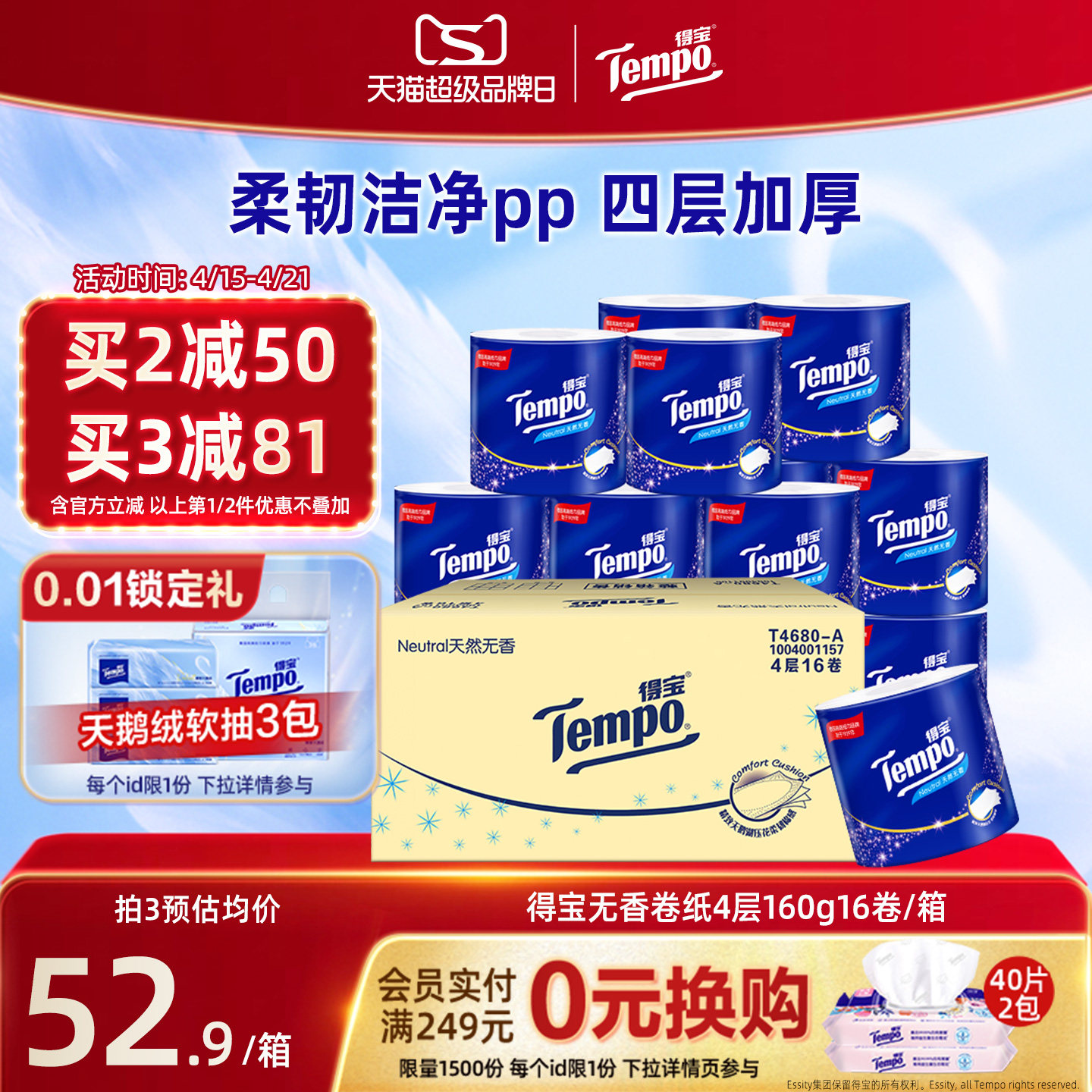 📚 Tempo得宝有芯无香卷纸4层加厚卫生纸厕纸160G16卷实惠家庭装