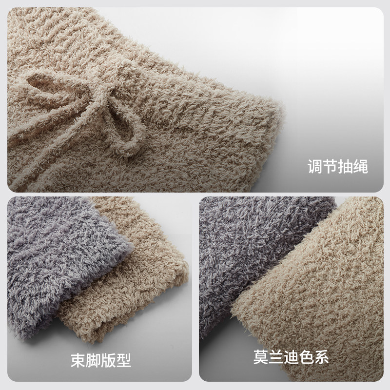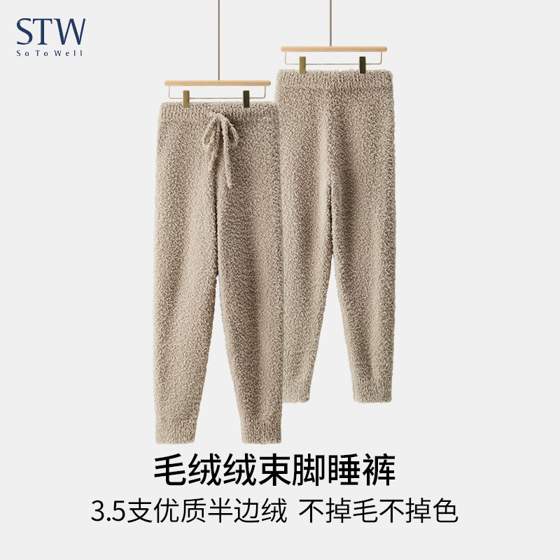 📚 STW半边绒家居裤女冬季新款加绒加厚睡裤男束脚保暖情侣绒绒裤子