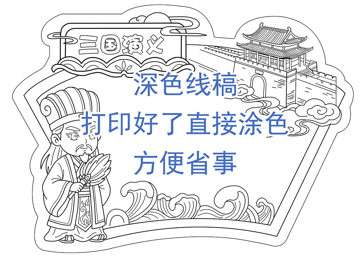 📚 243三国演义人物卡片手抄报电子版线稿可打印黑白线稿刘备张飞关