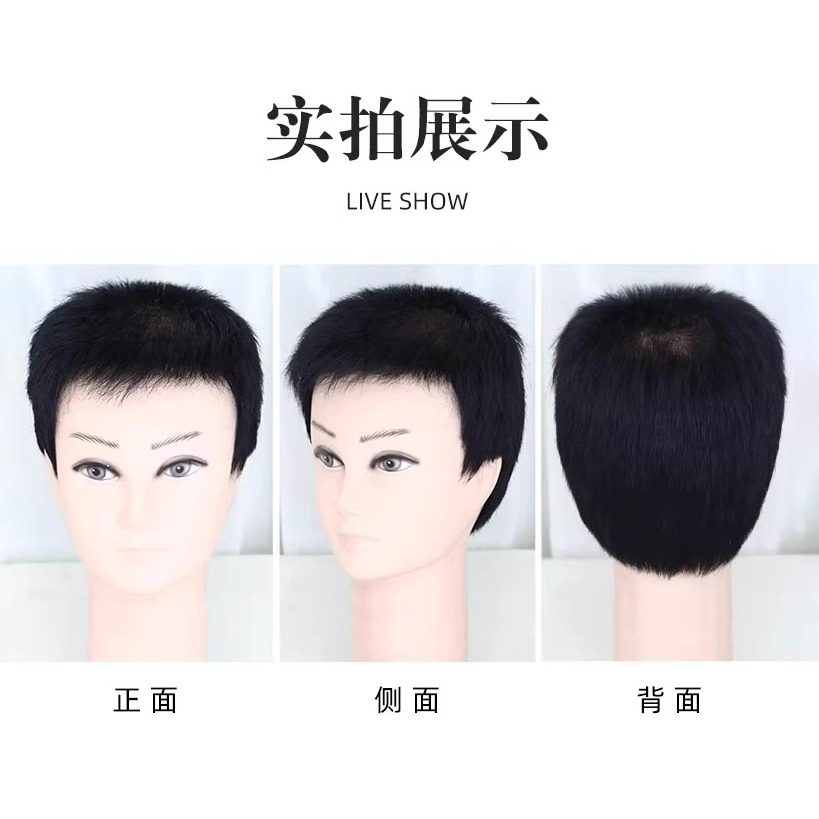 📚 假发中老年男士短发真发全真人发爸爸遮白发光头全头套自然真头发