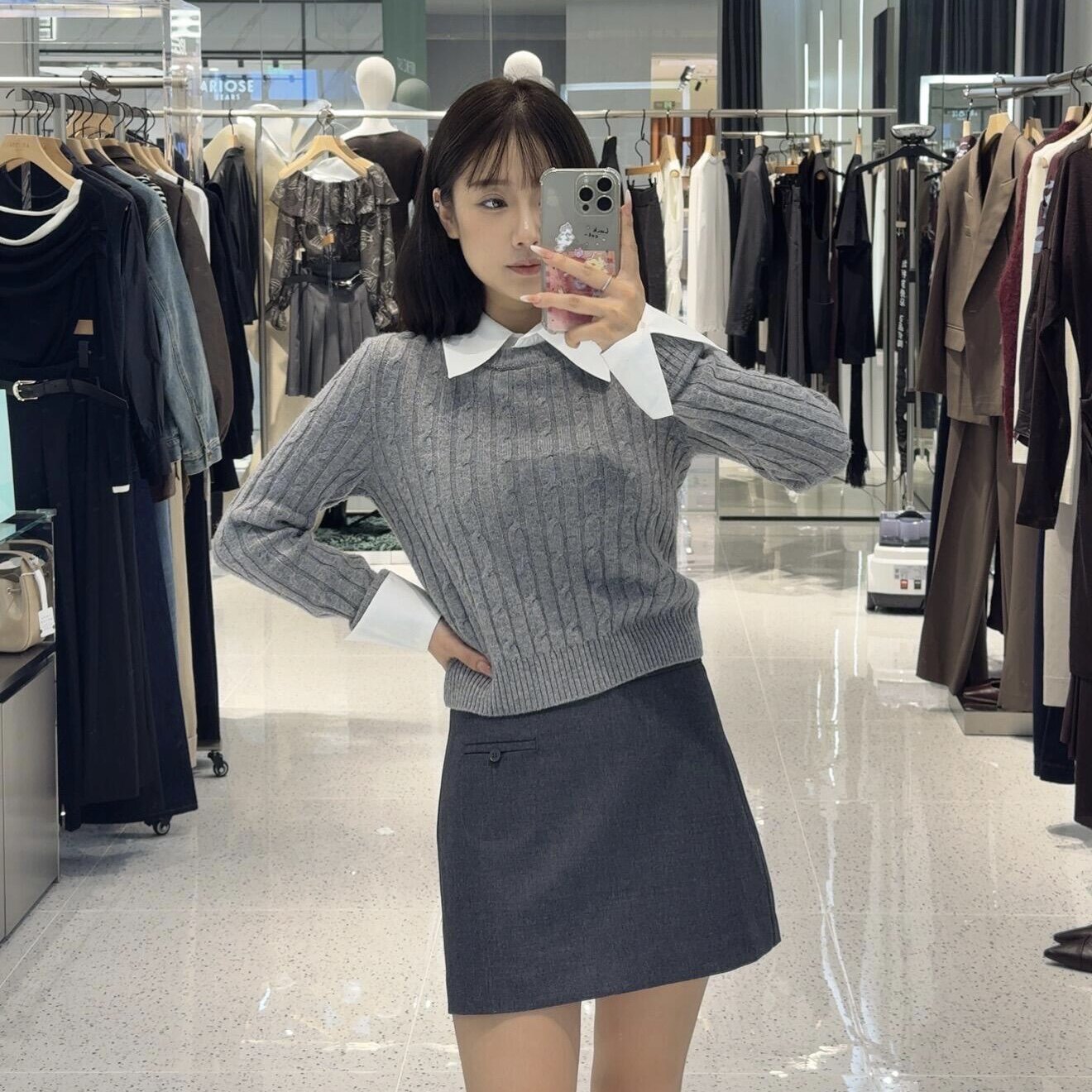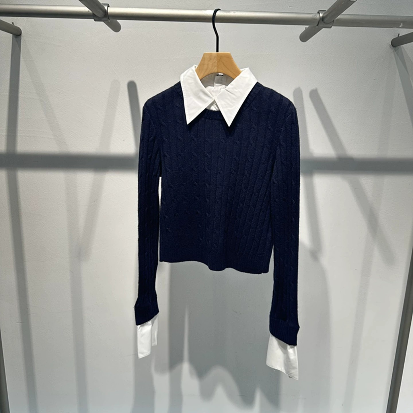 📚 ariosee艾诺丝槿官方旗舰店2025秋冬新款假两件针织衫女AR803015