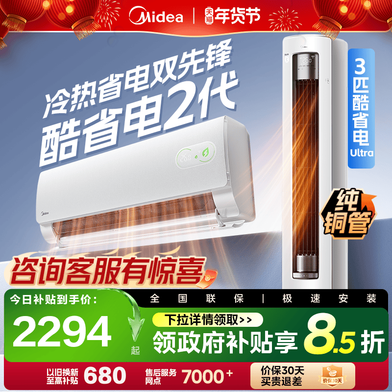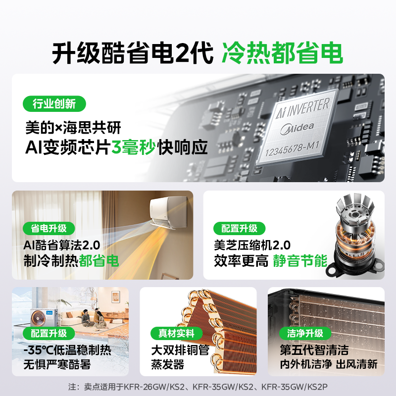 📚 美的空调新一级能效家用大1.5匹2匹变频冷暖挂机2026款酷省电二代