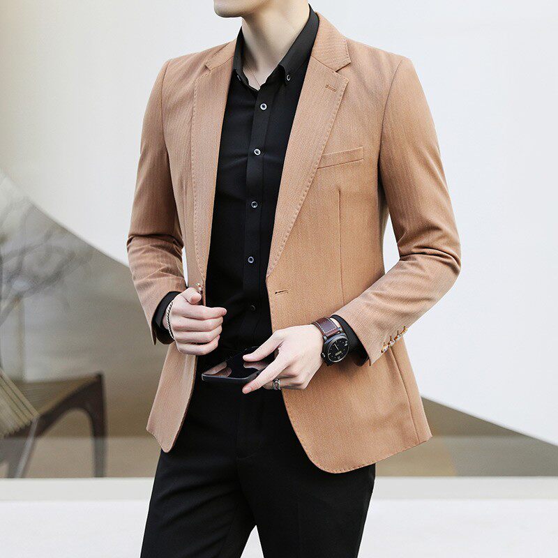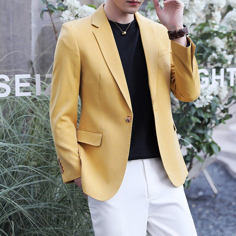 📚 黄色西装男免烫i休闲西装外套韩版潮上衣正装单西绿色大码高档西