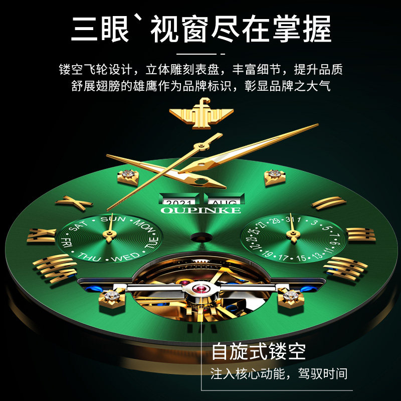 机械表男款瑞士腕表绿水