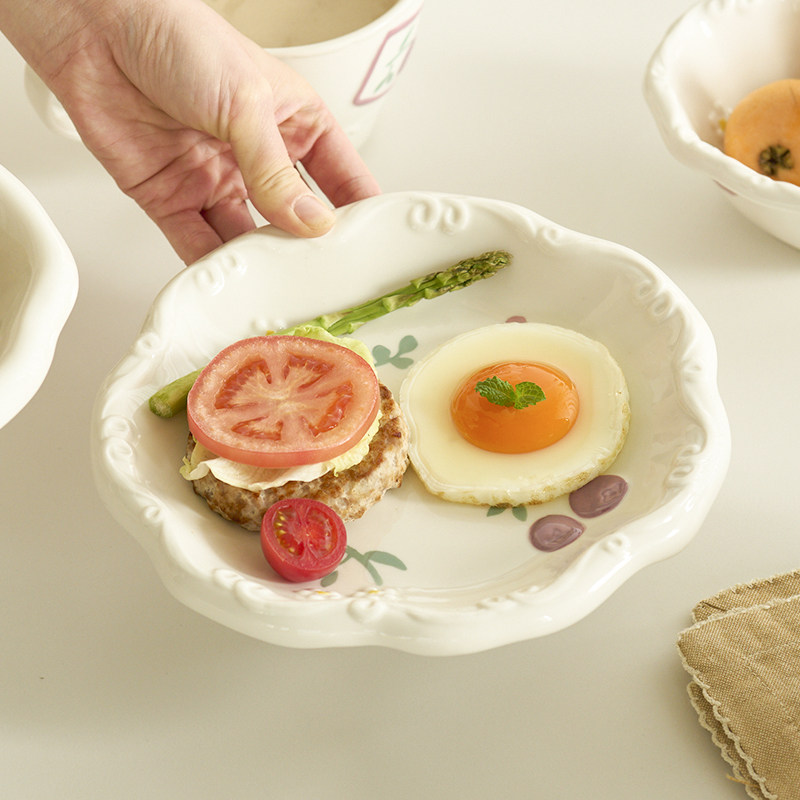 💖 这款餐具的设计简直太独特了!它采用了深盘陶瓷材质,光泽度十足,手感超级舒适。盘子上面的浮雕图案更是让人眼前一亮,仿佛在诉说着一种独特的艺术气息。而且,它的颜色和图案都非常可爱,让人看了就忍不住想要入手。