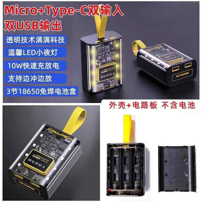 📚 18650行动电源盒diy套件锂电池盒套料配电箱聚合物移动充外壳透明