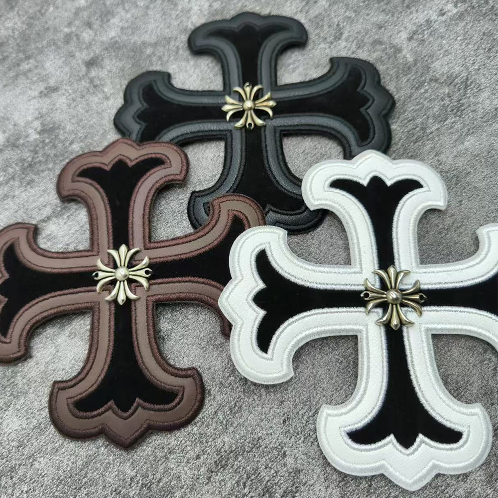 📚 新款个性十字架仿皮标徽章装饰包帽补丁 diy缝补衣服裤子T恤布贴