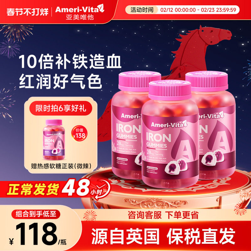 📚 亚美唯他AmeriVita补铁软糖进口女性气血儿童孕妇孕期贫血补铁剂