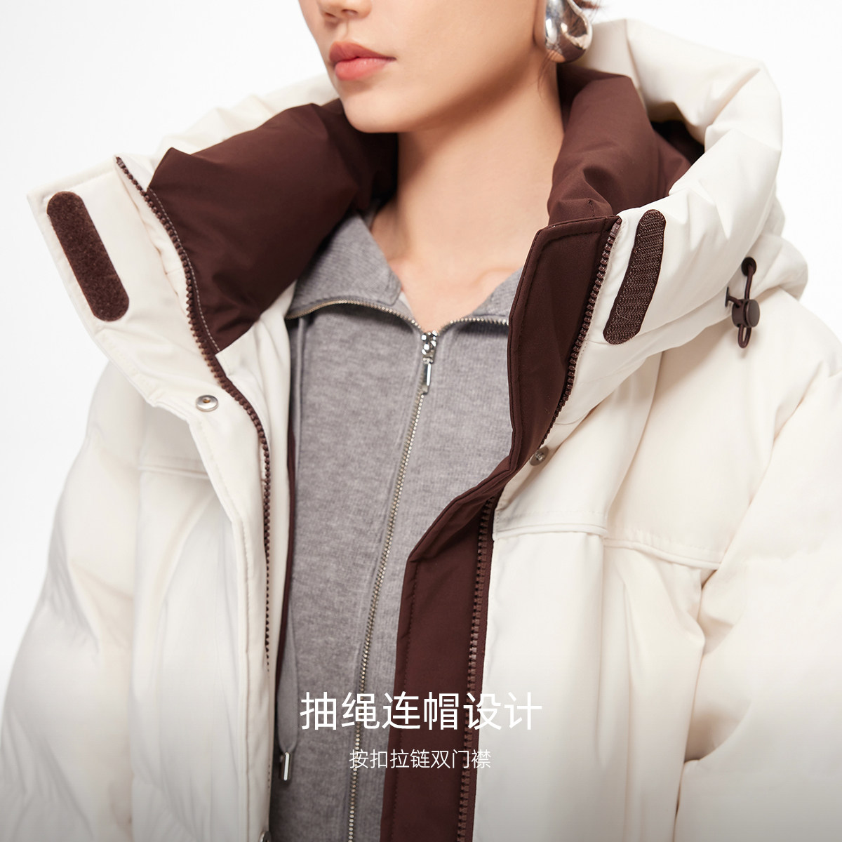 📚 Vero Moda羽绒服2025冬季新款90白鸭绒连帽撞色中长款325412041