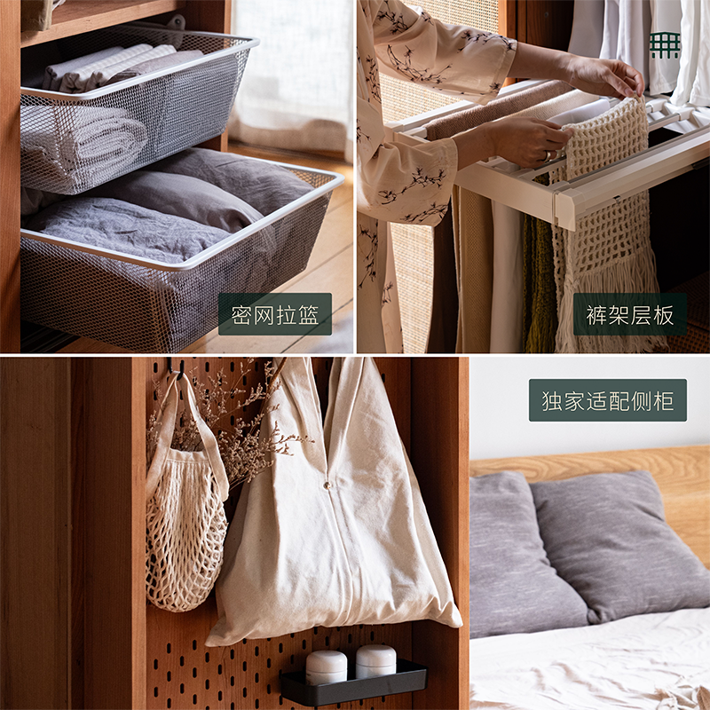 📚 无即所有日式简约衣柜家用卧室储物收纳柜子木质儿童藤编透气衣橱