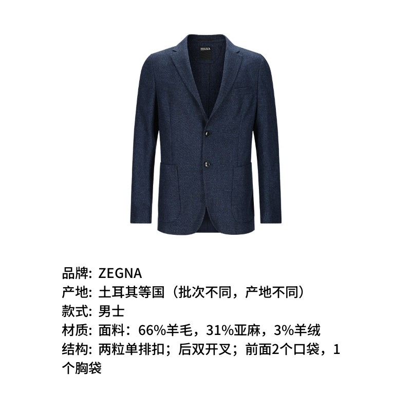 📚 ZEGNA杰尼亚 男士单排扣休闲西服西装上衣外套250728A2 1DNMG0