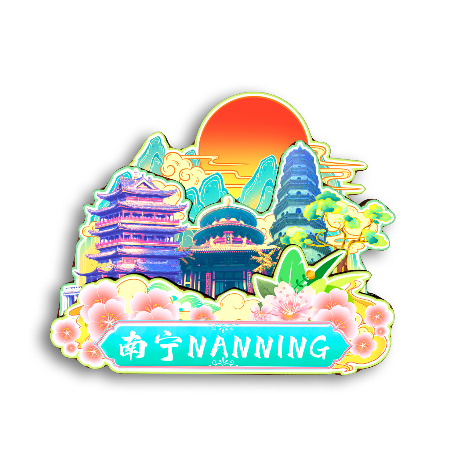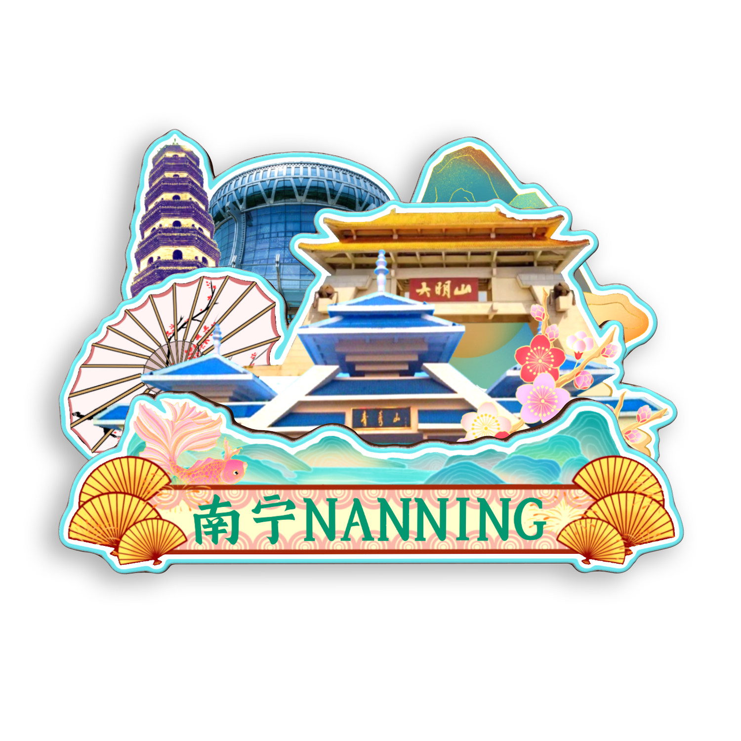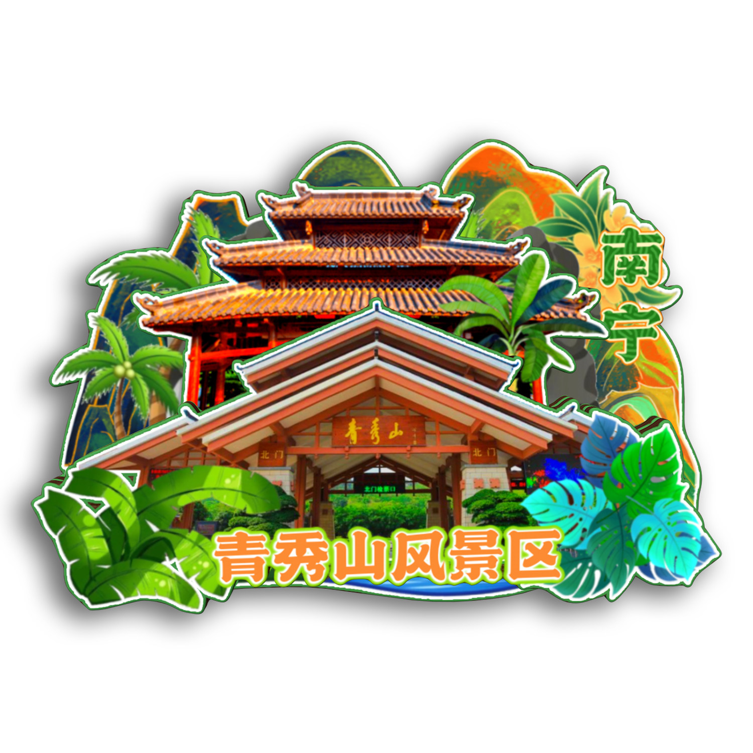 📚 广西南宁青秀山南湖公园方特木质冰箱贴旅游纪念品原创文创礼品