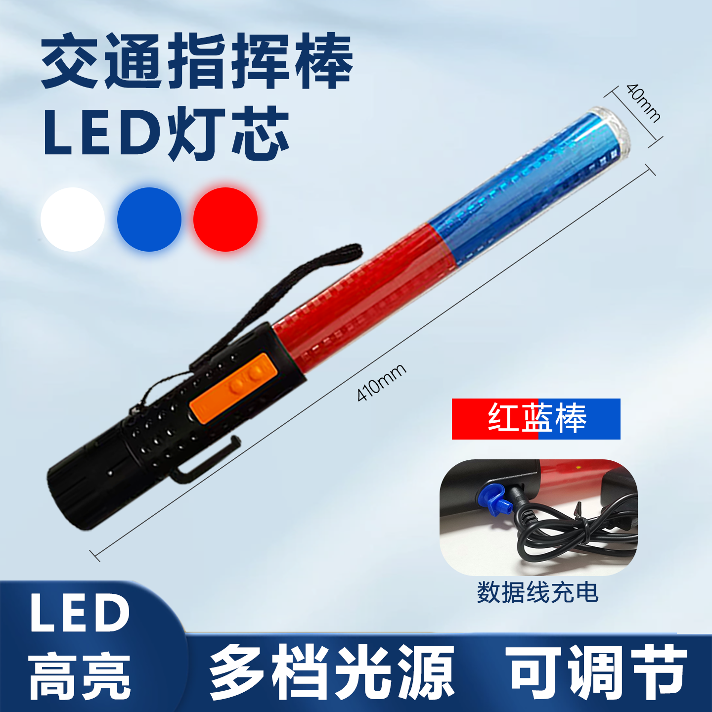 📚 交通指挥棒LED警示棒灯充电式应急闪光棒带口哨手持多功能荧光棒