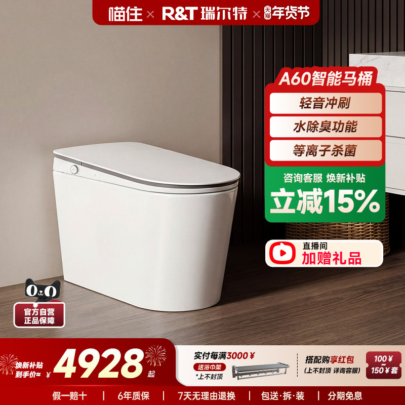 💥揭秘!瑞尔特高端智能马桶A60泡沫盾无水压限制,券后仅需6998!💥