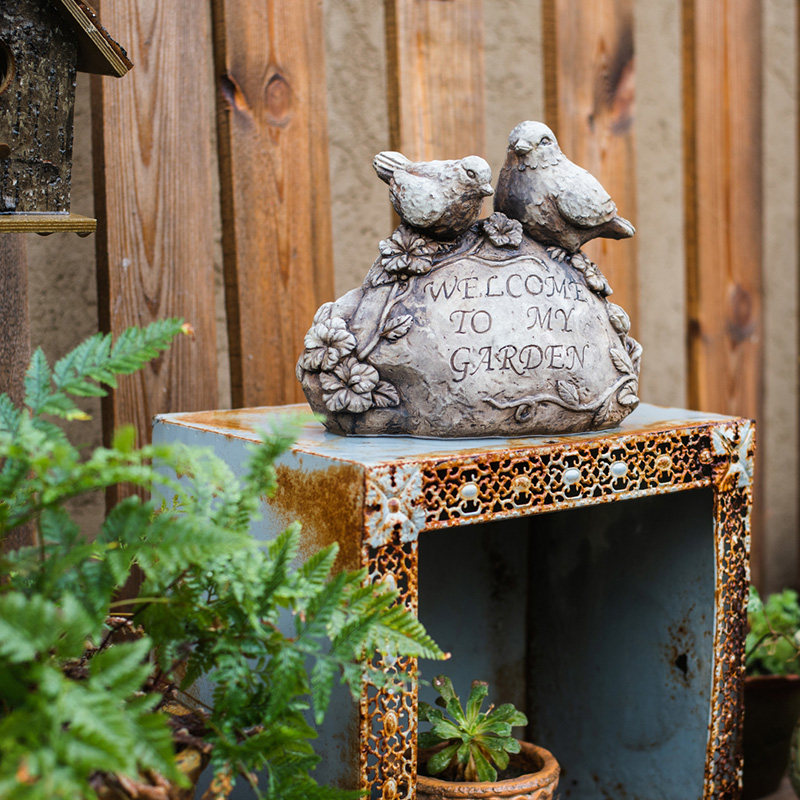 📚 极速welcome欢迎门牌创意庭院C杂货装饰摆件水泥小鸟石头碑雕花园