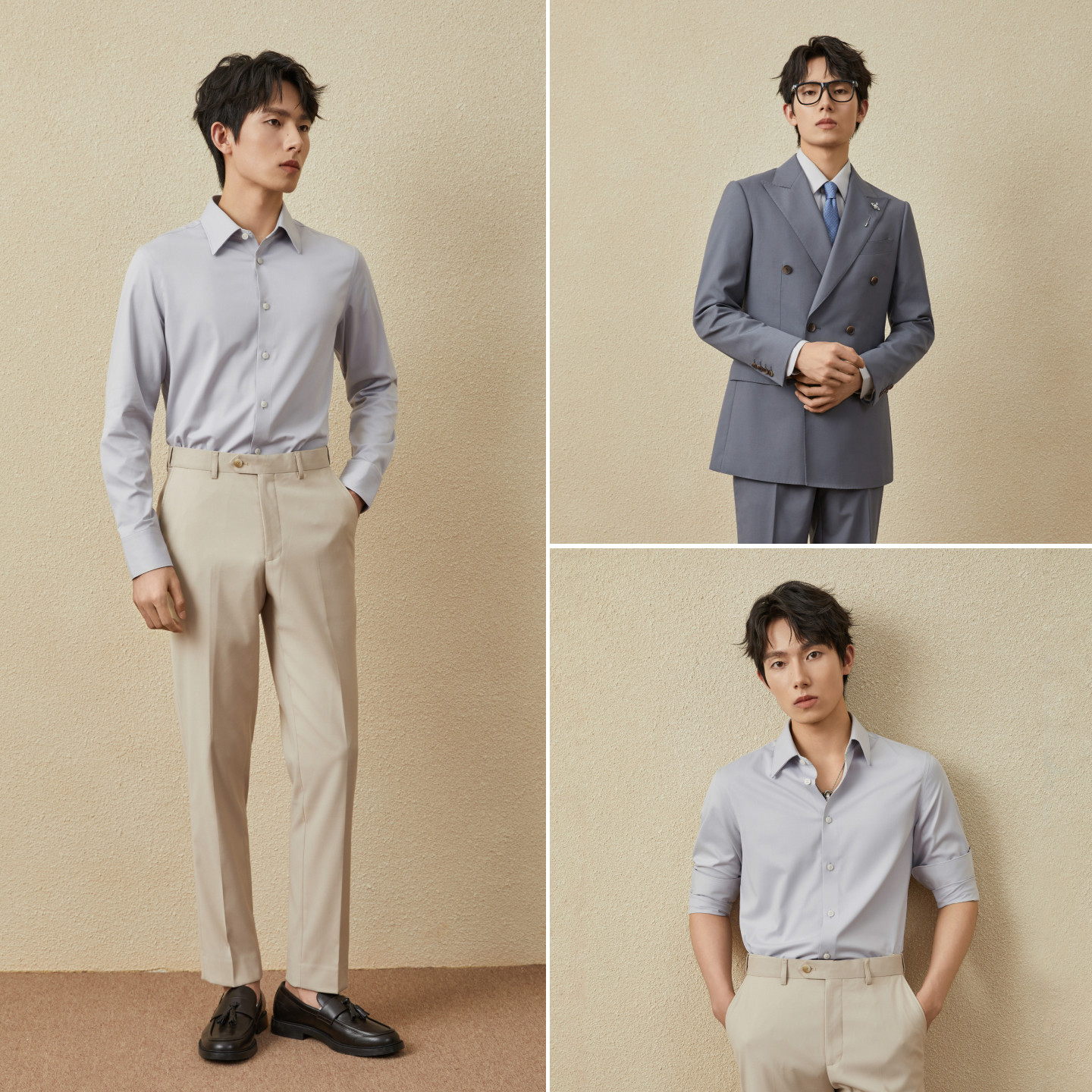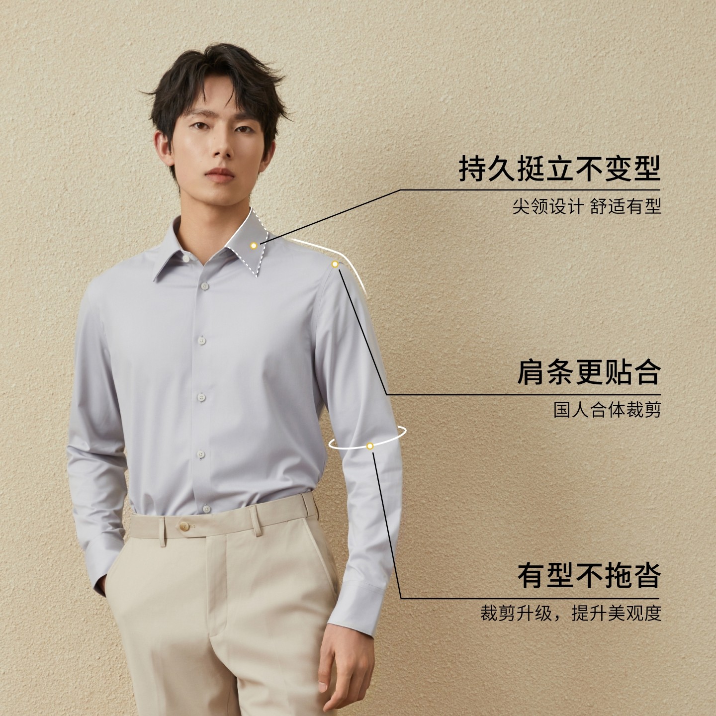 📚 【三防免烫】吉约蒙长袖衬衫男灰色结婚新郎商务抗皱内搭正装衬衣