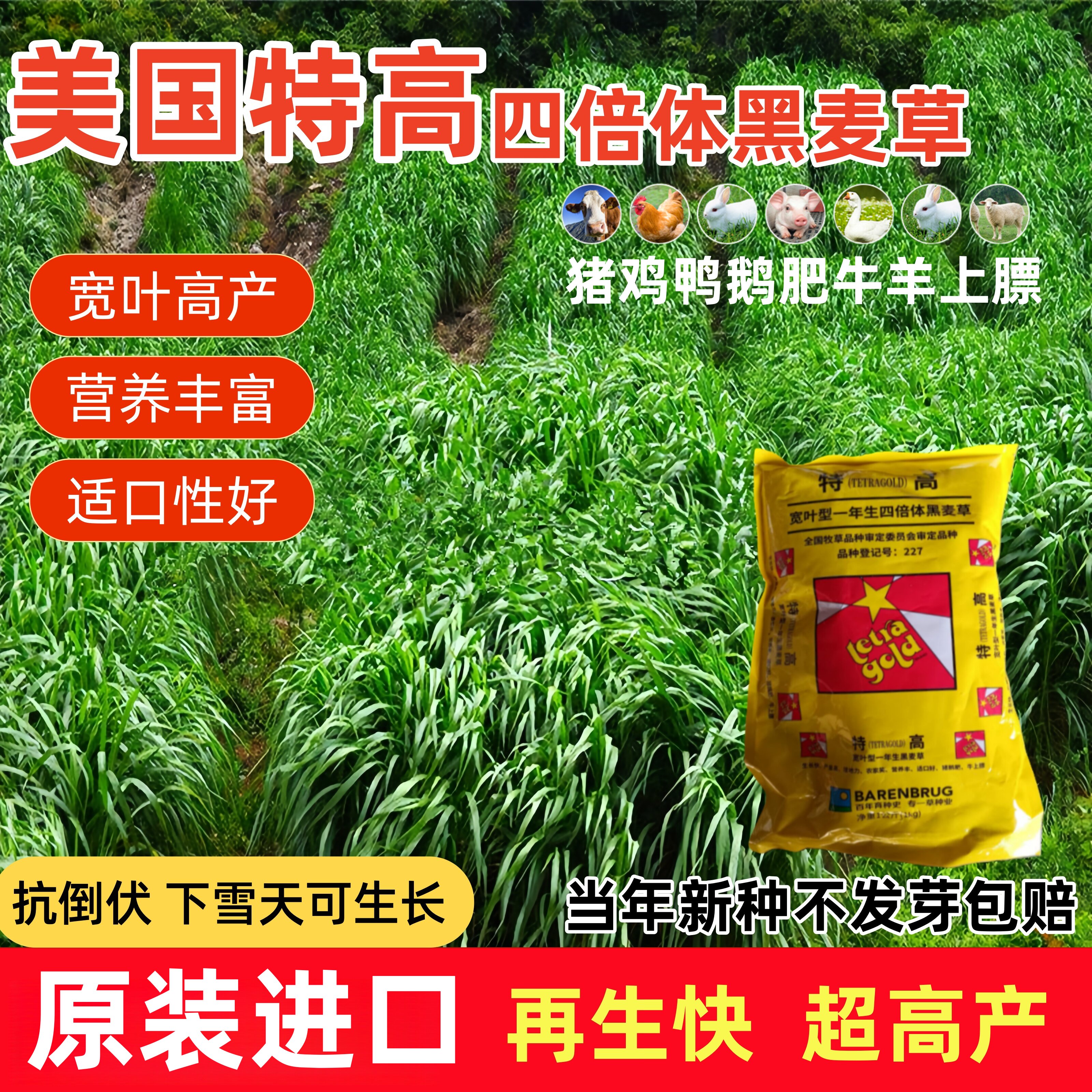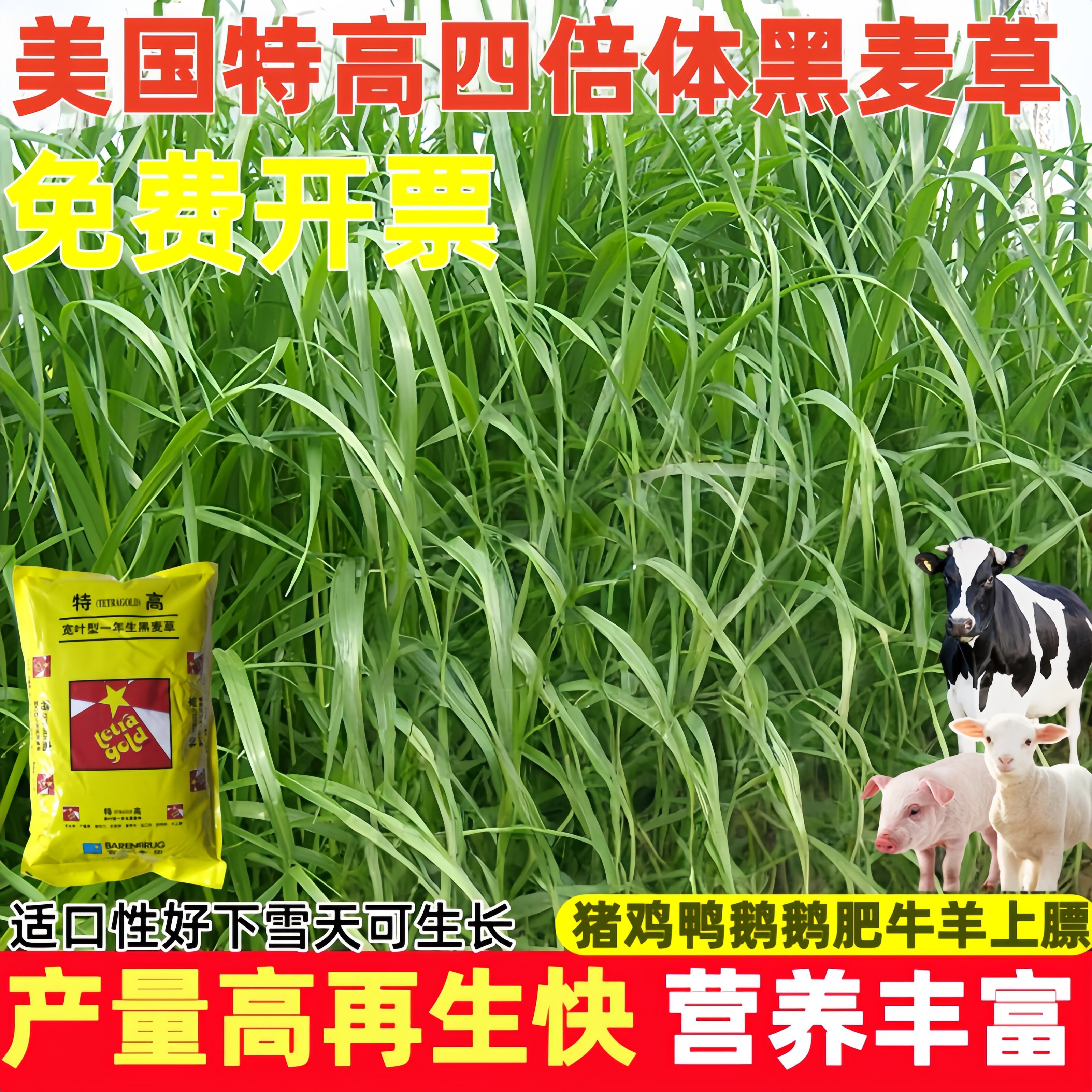 📚 美国特高黑麦草种子养殖四倍体耐寒牧草畜牧鸡鸭牛羊鱼草种籽四季