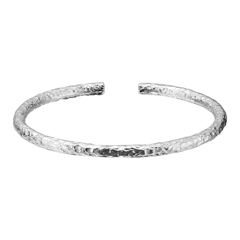 📚 顺庆银楼9999纯银手镯女锤纹实心足银手环镯子新中式小众送女友