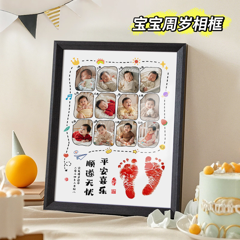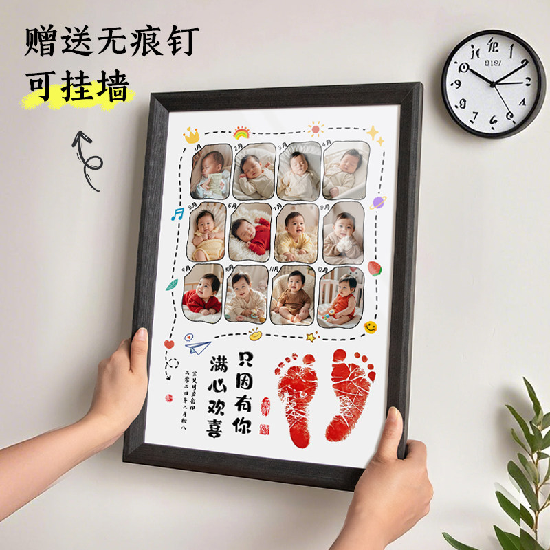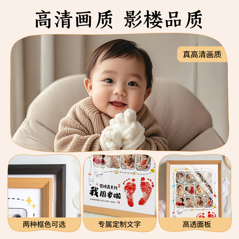 📚 周岁手足印画满月百天仪式感生日纪念一岁一礼相框脚印留念一周岁