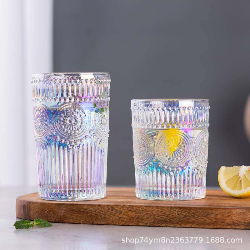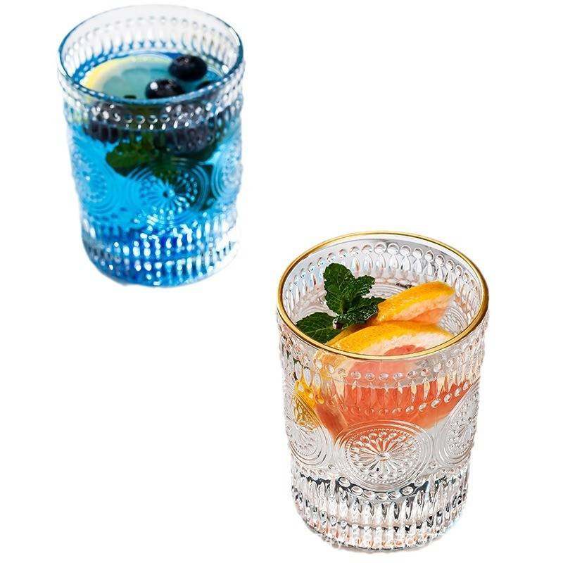 #复古浮雕玻璃杯子 #ins简约风格 #太阳花图案 #透明金边 #欧式个性酒杯