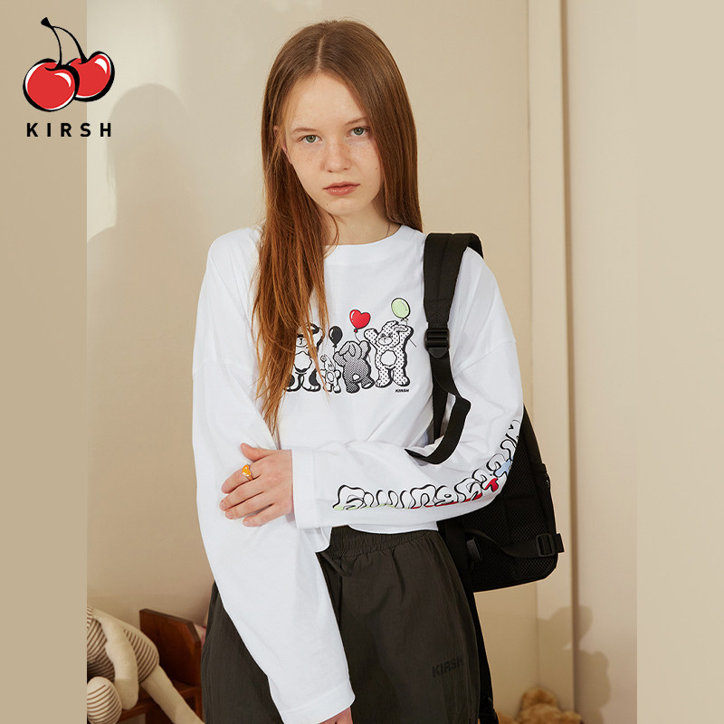 📚 KIRSH大樱桃春新款长袖T恤女装WITTY兔印花短款宽松圆领