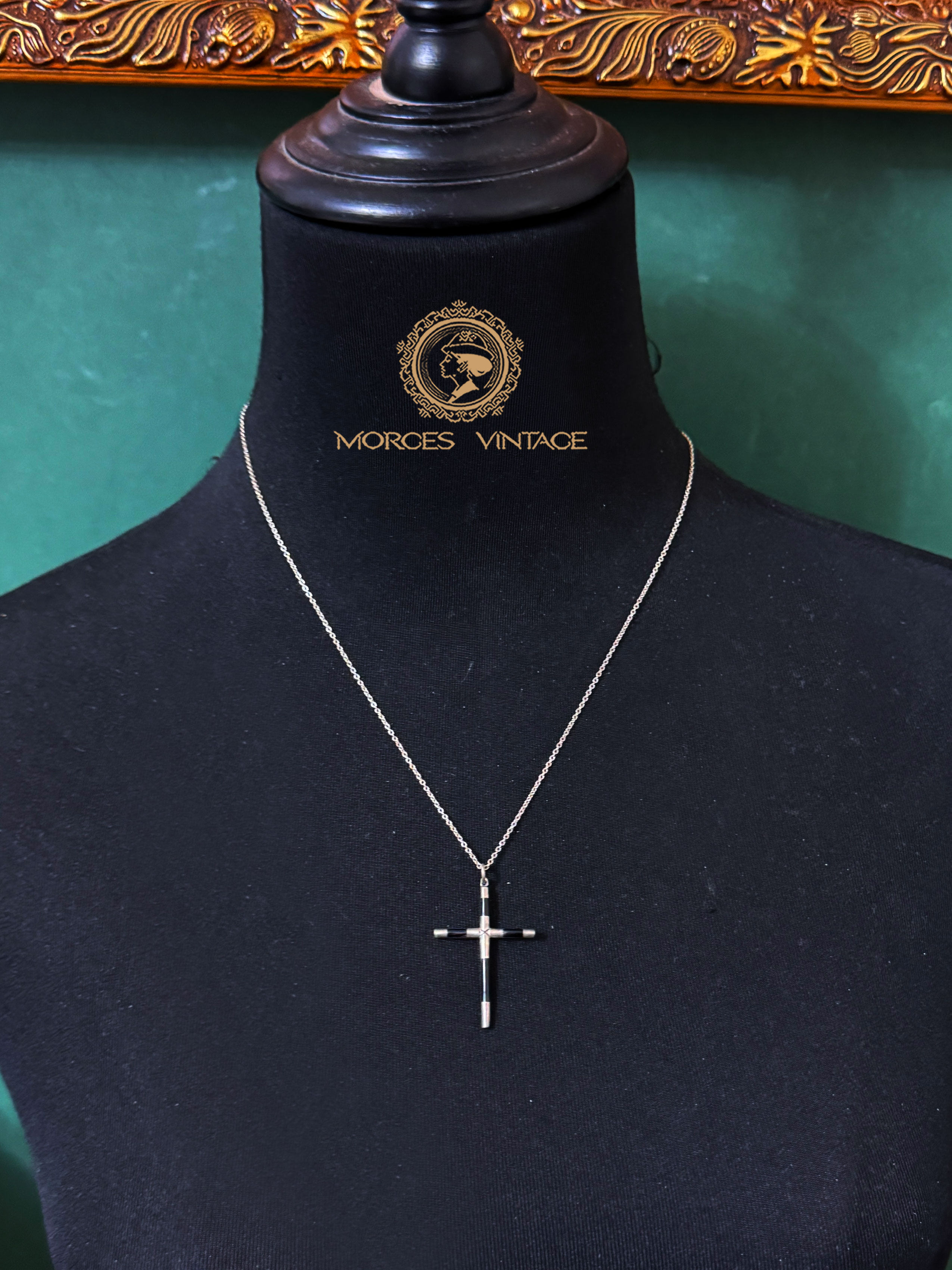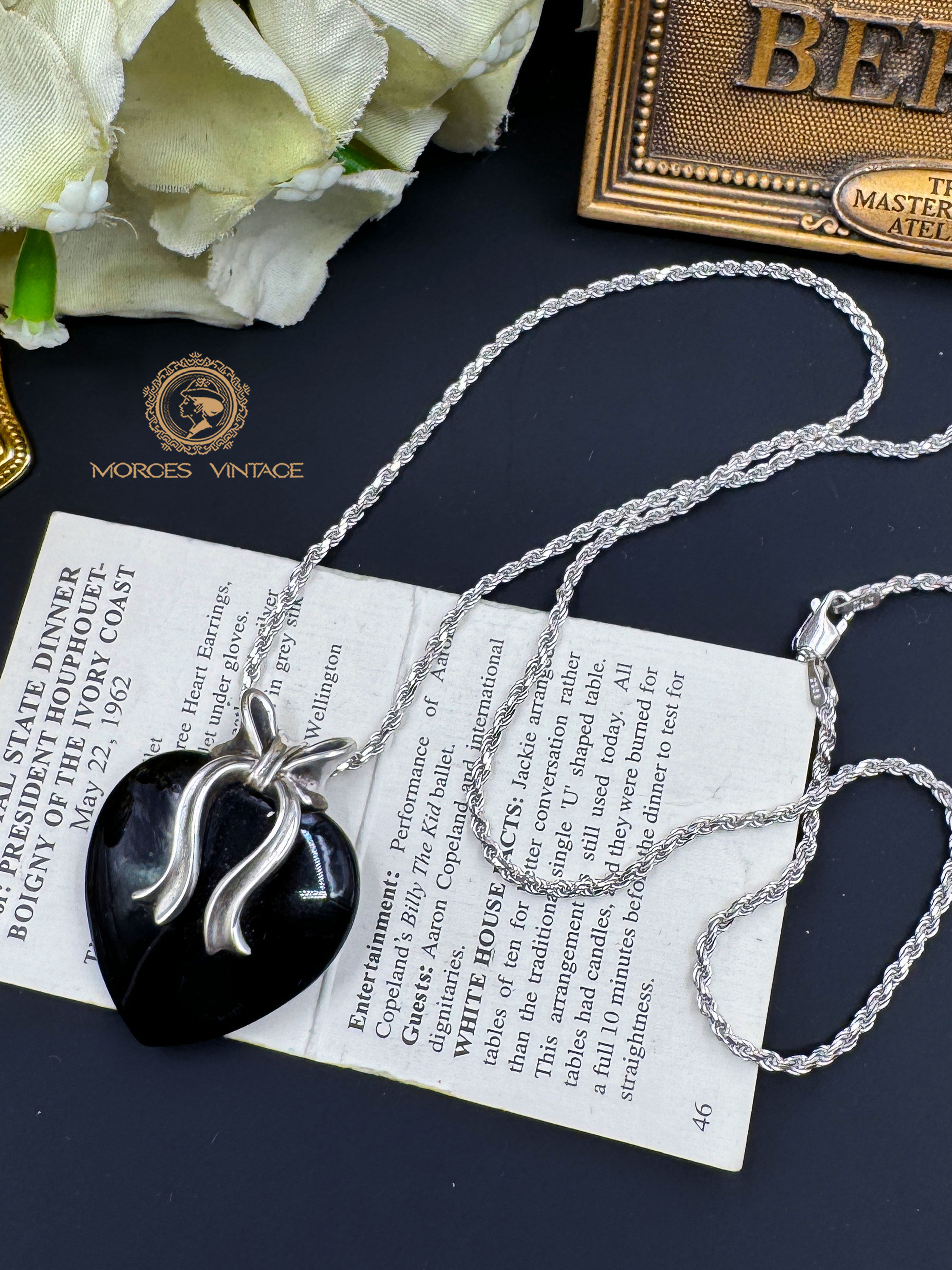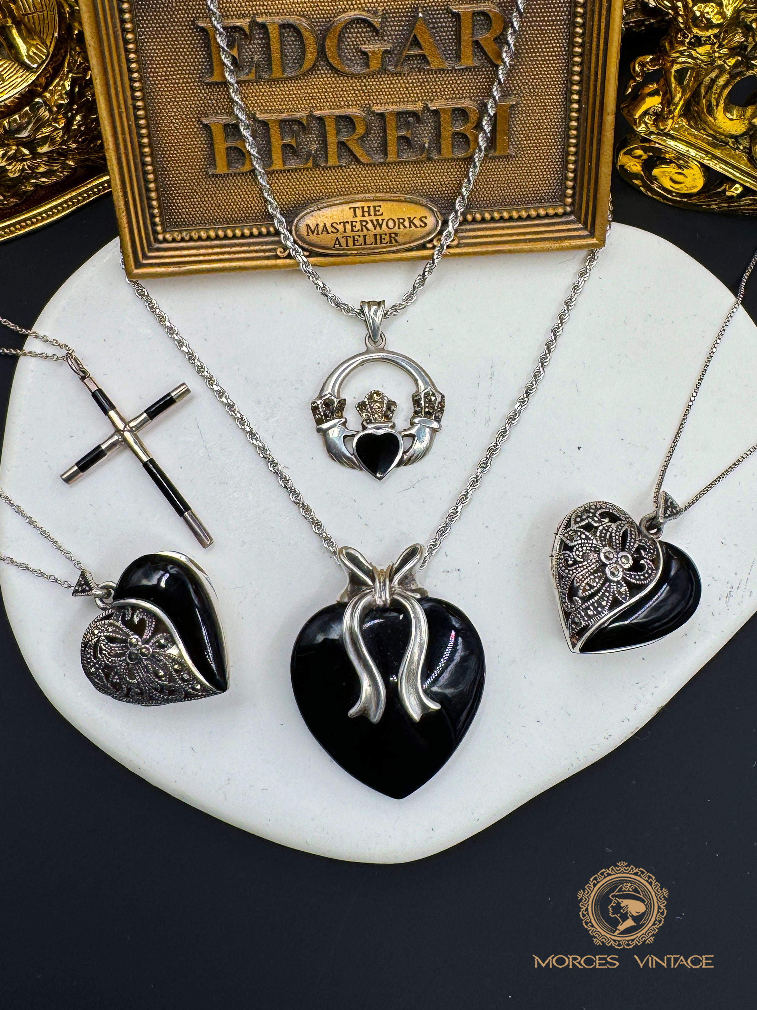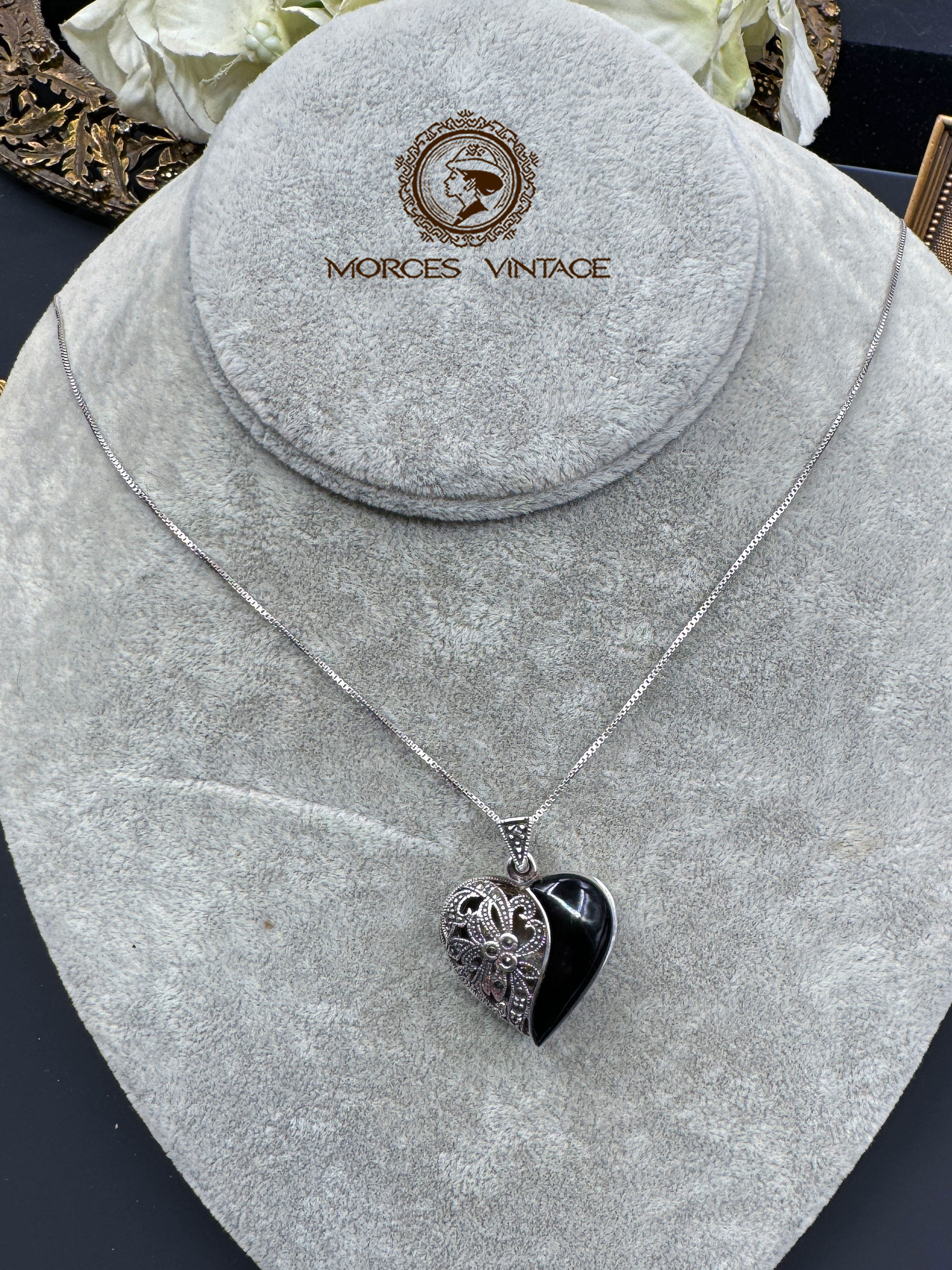 📚 Vintage中古首饰925标准纯银黑玛瑙爱心相片盒像片盒十字架项链