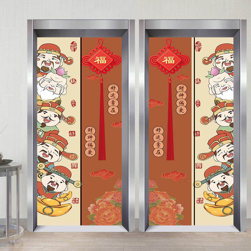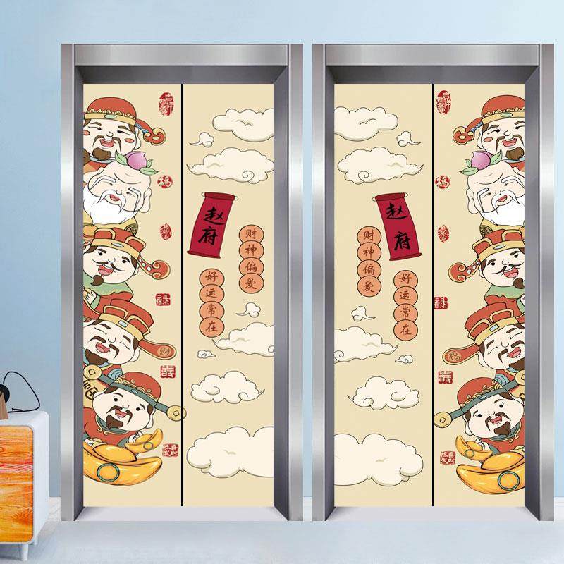 📚 入户电梯门装饰贴纸一梯高级感五路财神轻奢开门见喜大吉创意定制
