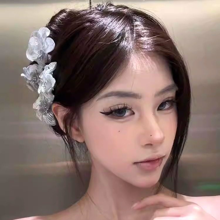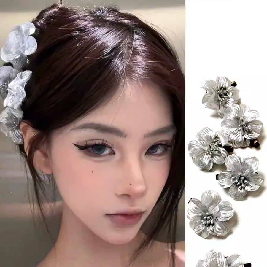 📚 博主同款高级感银色花朵发饰头花发卡侧边夹丸子头上花花发夹头饰
