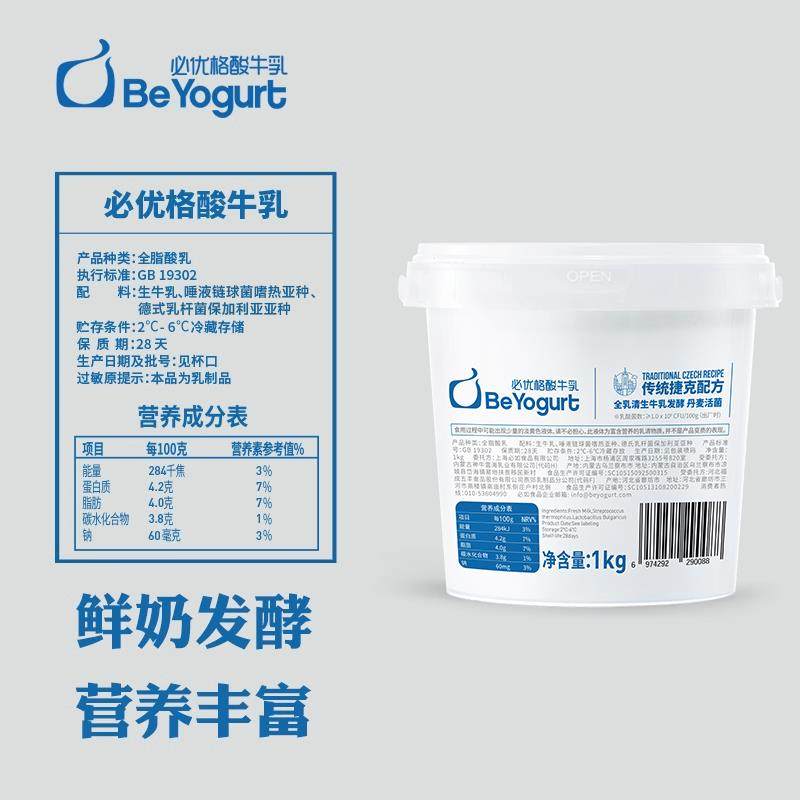 📚 必如 原味酸牛乳必优格低温冷藏鲜奶发酵醇0添加蔗糖厚酸奶1kg装