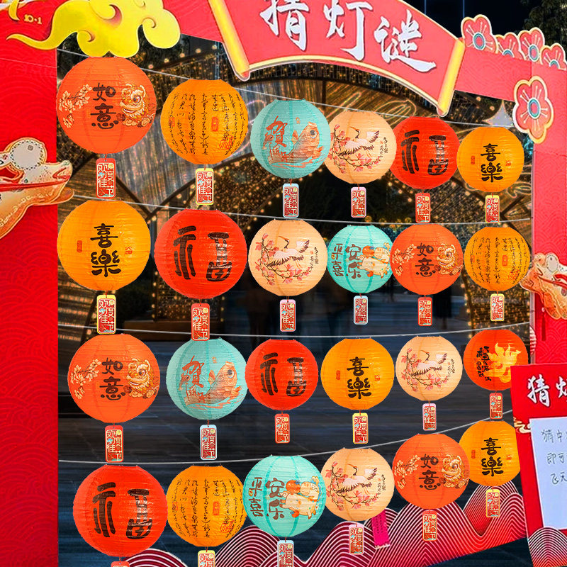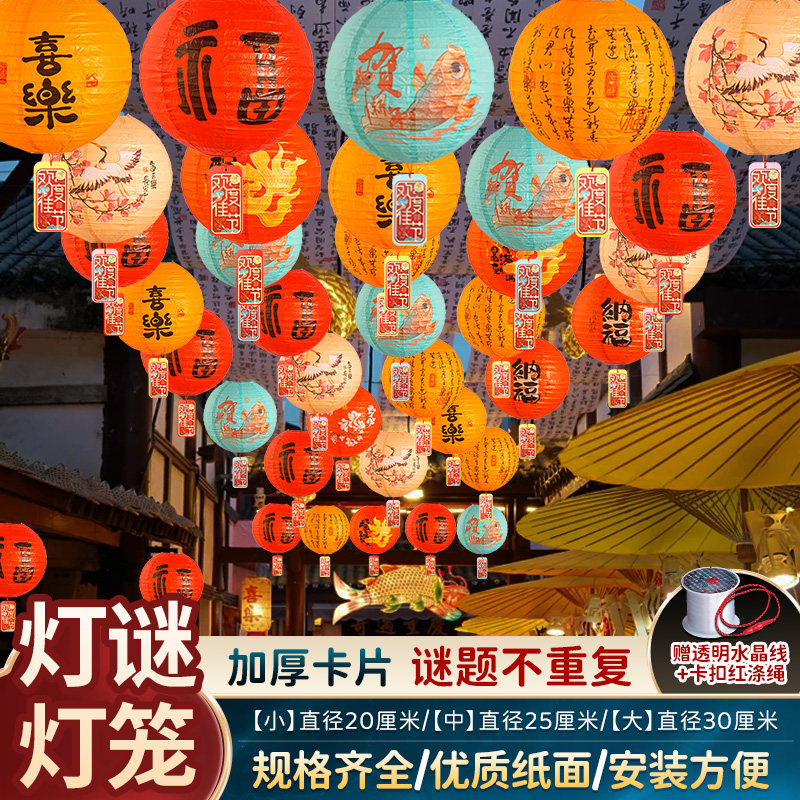 📚 元宵节猜灯谜卡片灯笼新款2026正月十五主题活动装饰道具场景布置