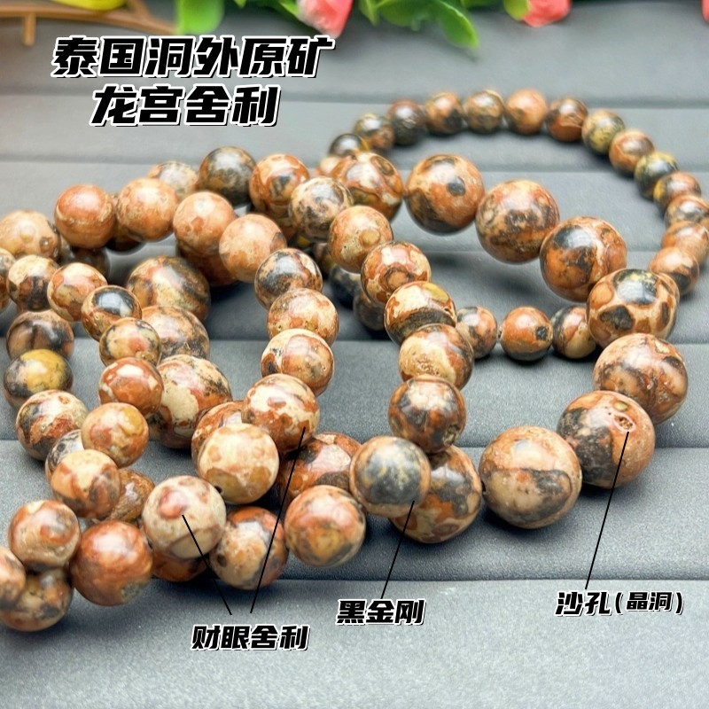 📚 泰国龙宫舍利手串男女单圈黑金刚财宝舍利洞外原矿敦煌纹水晶手链
