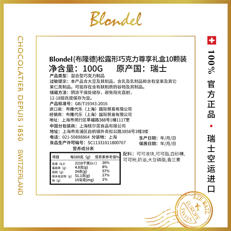 📚 【顺丰速达】Blondel布隆德松露形巧克力尊享礼盒10颗送女友礼