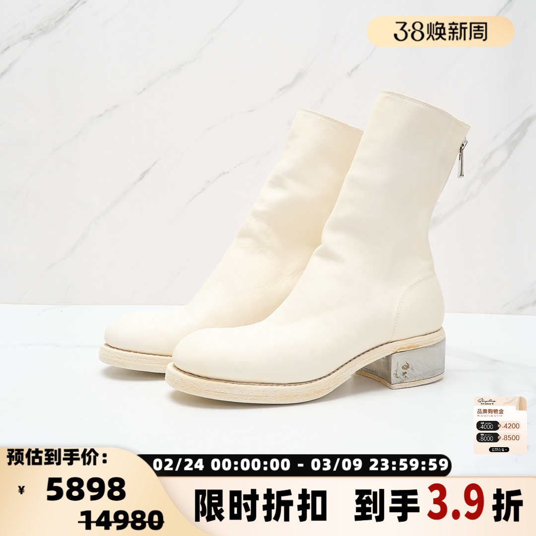 📚 GUIDI 日常通勤788zi女士粗跟拉链圆头短靴马丁靴银泰百货 301596