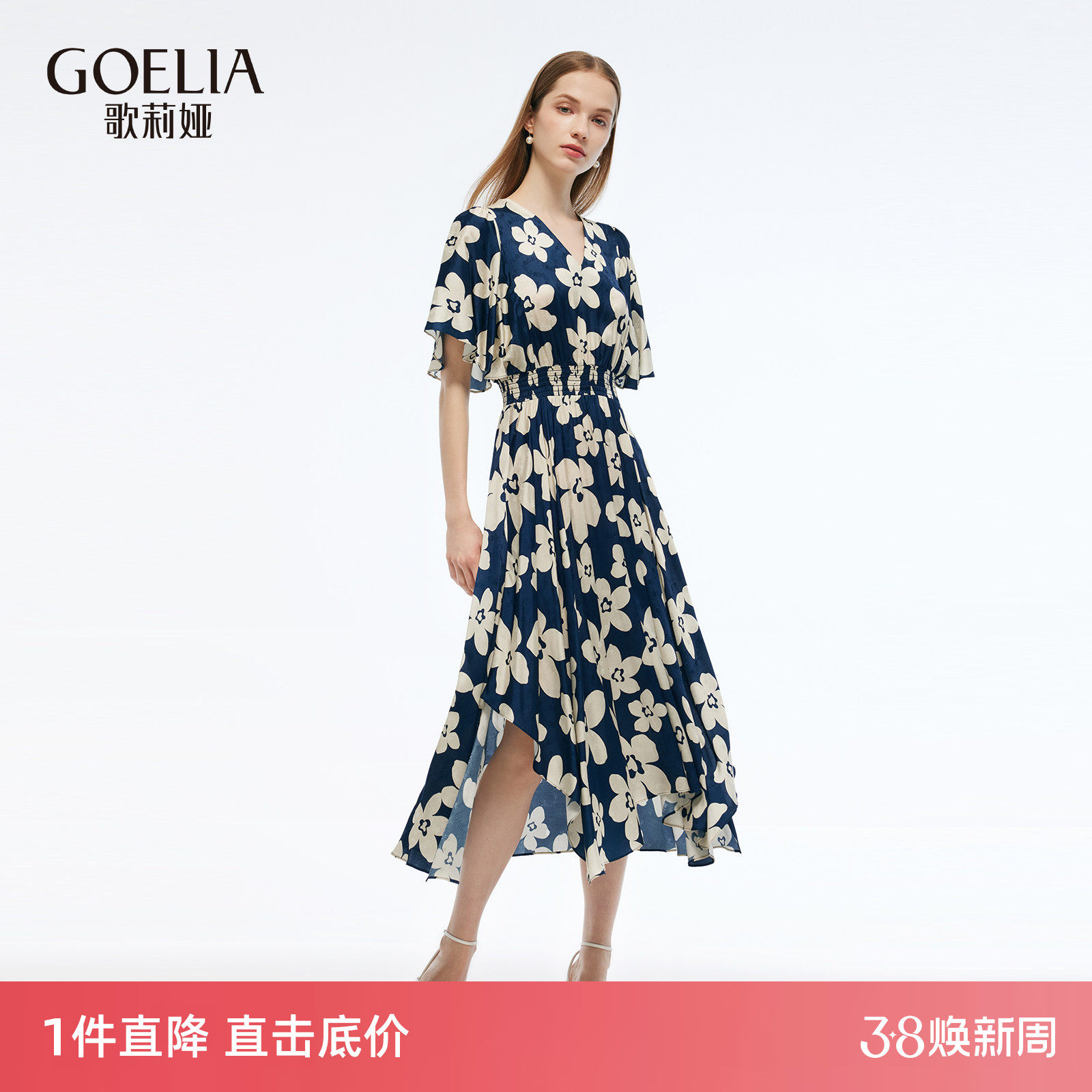 📚 直降5折|歌莉娅人丝人棉连衣裙女夏季V领收腰荷叶袖裙子