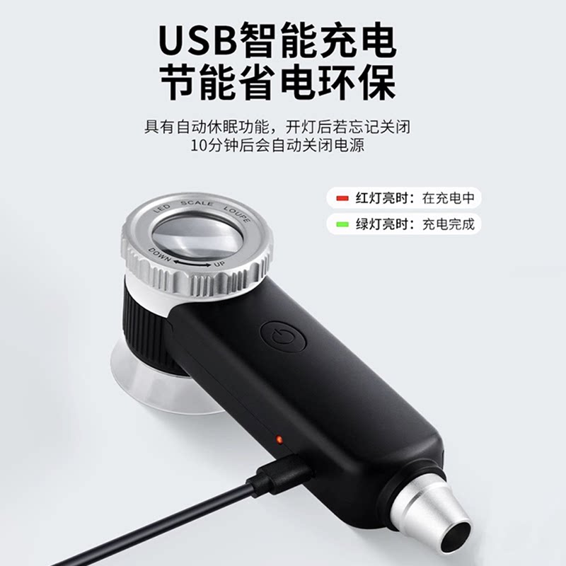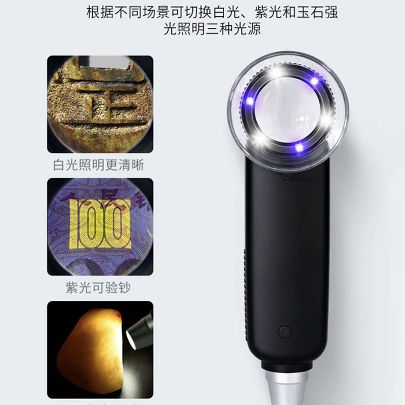 📚 手持可充电90倍放大镜带led灯邮币文玩银元鉴定黄光手电用照玉石